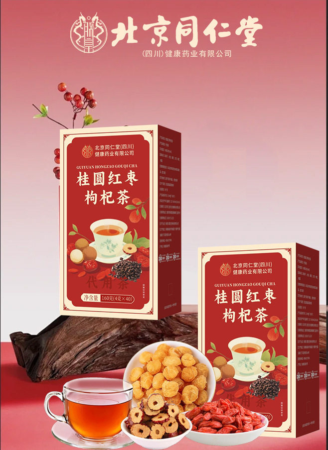 Beijing Tongrentang Longan Red Date Wolfberry Tea 160G/Box Rose Red Date Ginger Tea Genuine Wholesale Dropshipping
