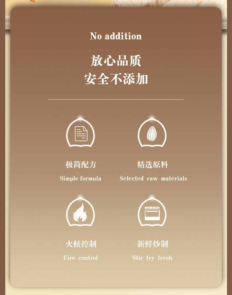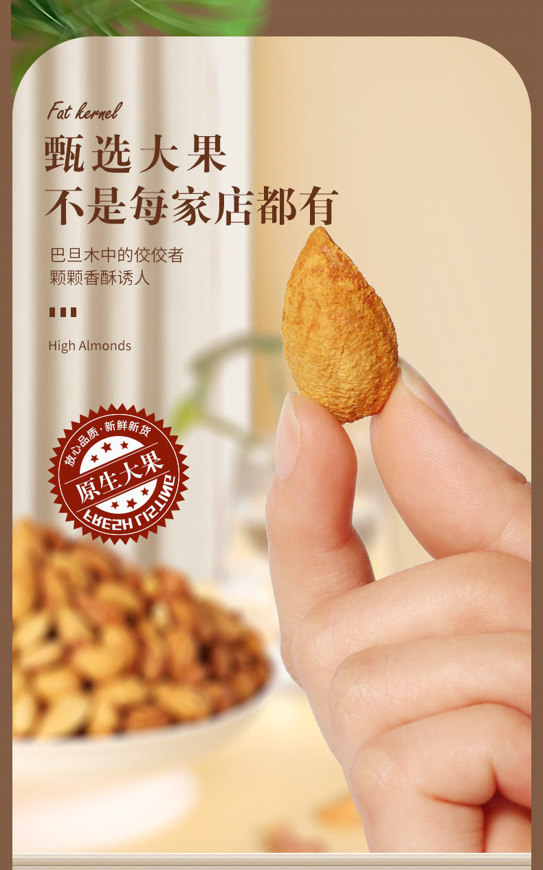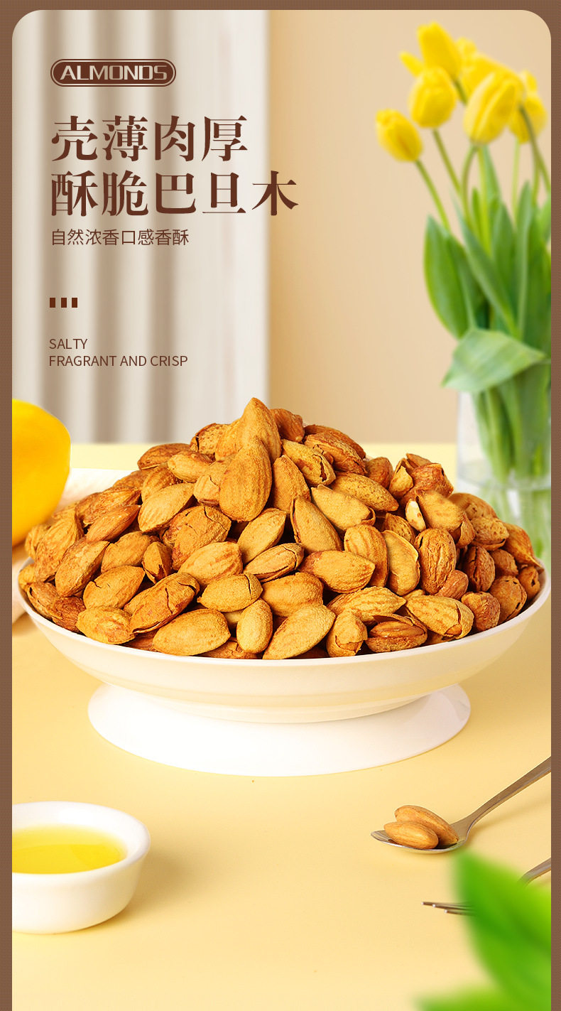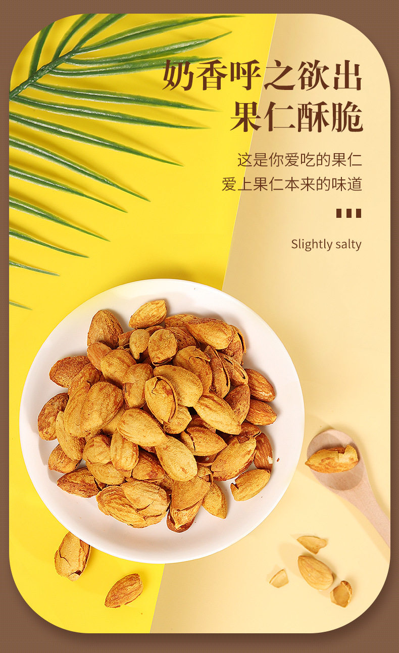 | Taste | [salt baked· 1.0kg ] shelled almonds 250g*4 cans,[salt baked· 0.5kg ] shelled almonds 250g*2 bags,ăsalt baked· 1.0kg ăshelled almonds 250g*4,[salt baked·half a catty] net weight of shelled almonds 250g*1,ămilk flavor 0.5kgăshelled almonds 250g*2 cans,[milk flavor·half a catty] shelled almonds 250g*1,ă 0.5kg ăalmond kernels 250g*2,[half a pound] almond kernels 250g*1 can,ămilk flavor 1.0kgăshelled almonds 250g*4 cans,[tasting·50g] shelled almonds |