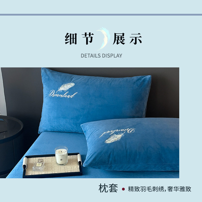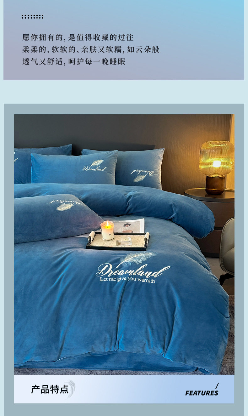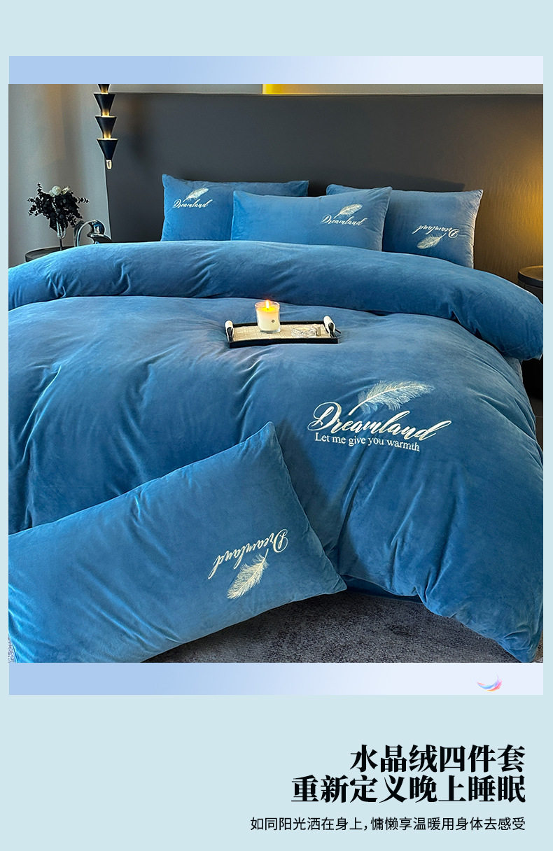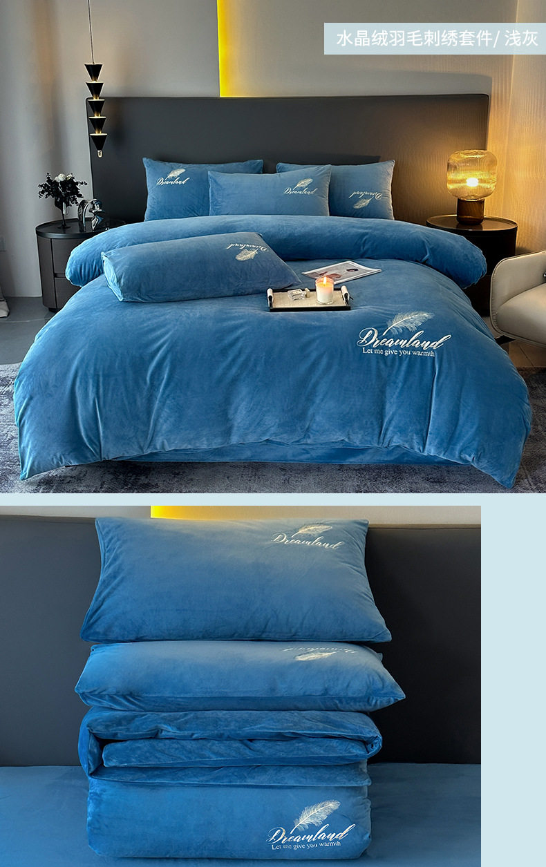 | Item number | Feather embroidered solid color crystal velvet four-piece set |