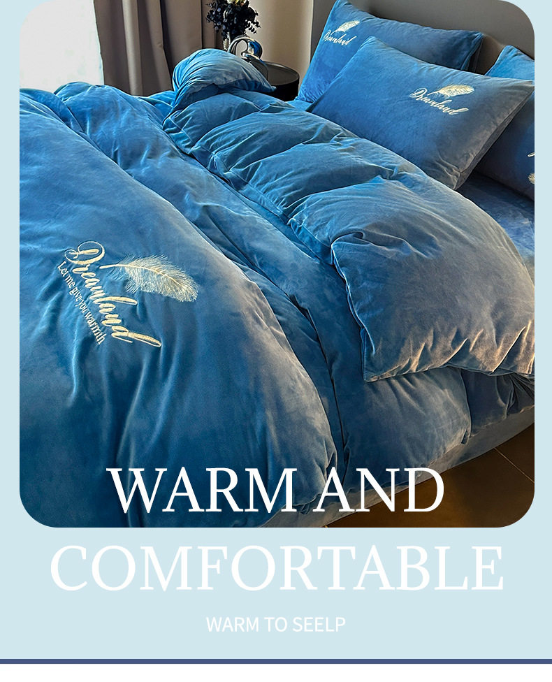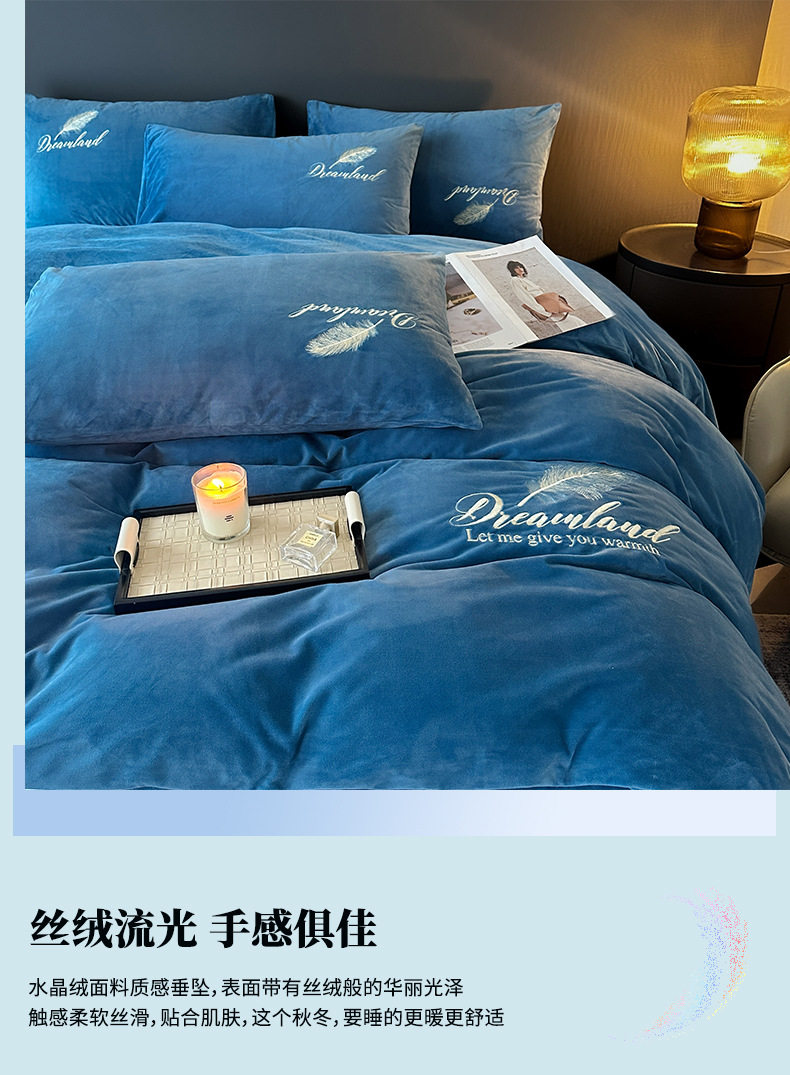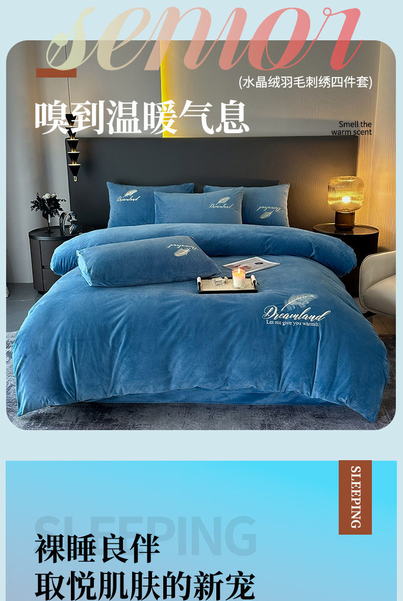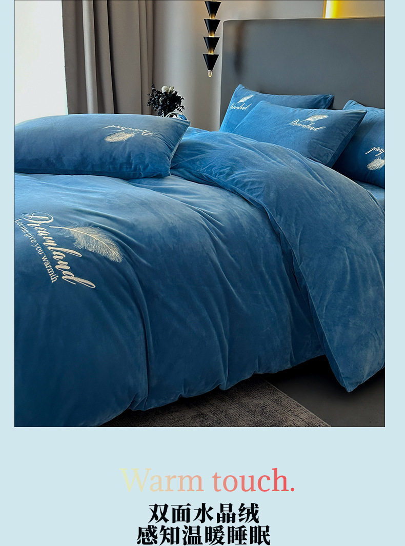 | Item number | Feather embroidered solid color crystal velvet four-piece set |