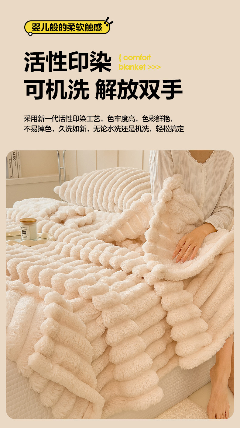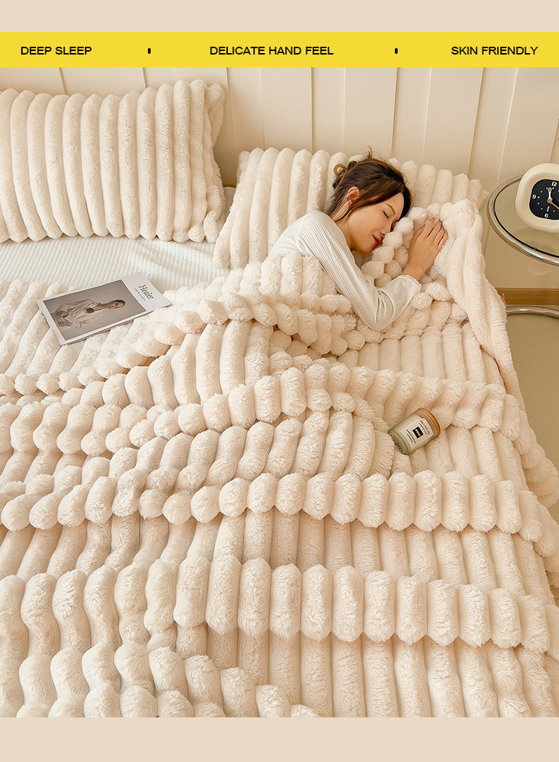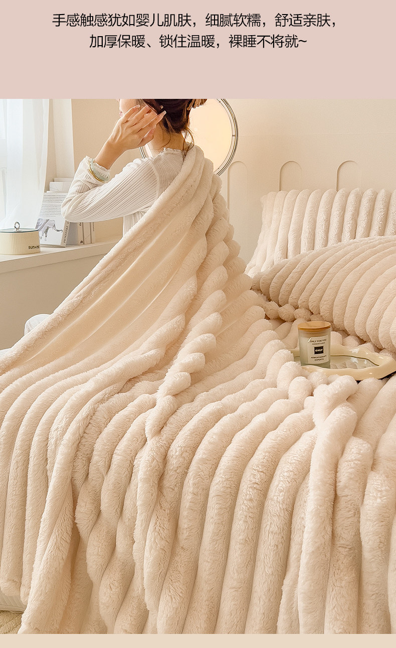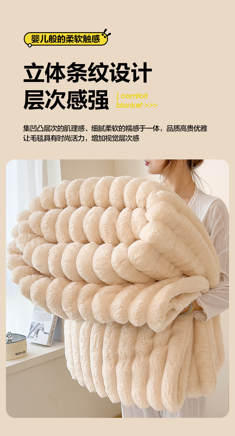 Rabbit Plush Blanket Winter Thickened Coral Velvet Blanket Flannel Office Nap Blanket Sofa Small Blanket Cross-Border Product