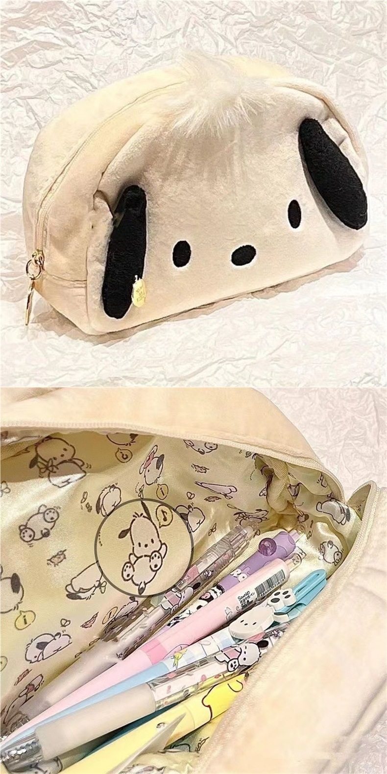 Japanese-Style Ins Cartoon Girl Large-Capacity Best Friend Stationery Bag Cute Plush Pochacco Pencil Case Pen Bag for Middle School Students