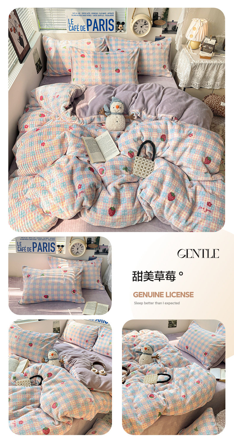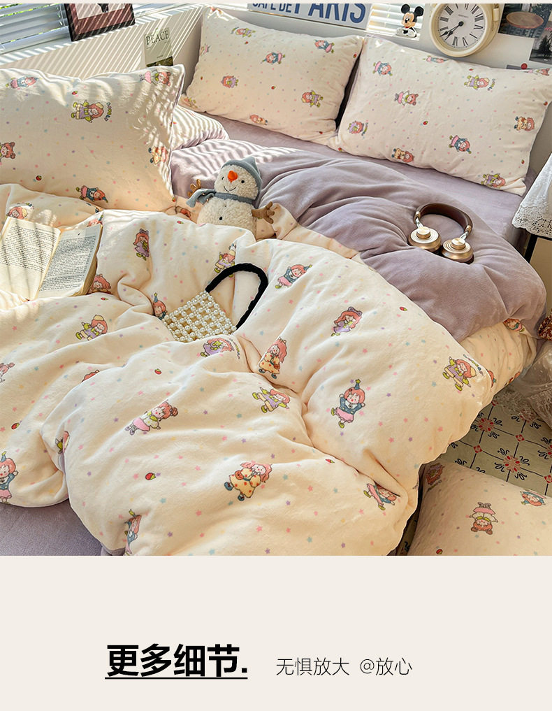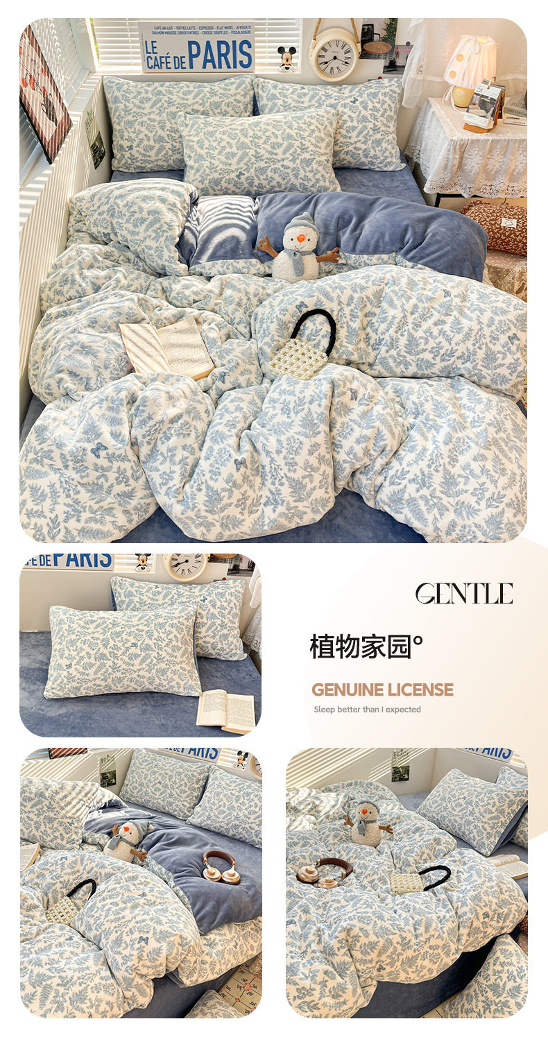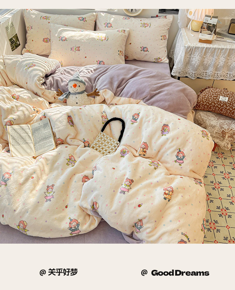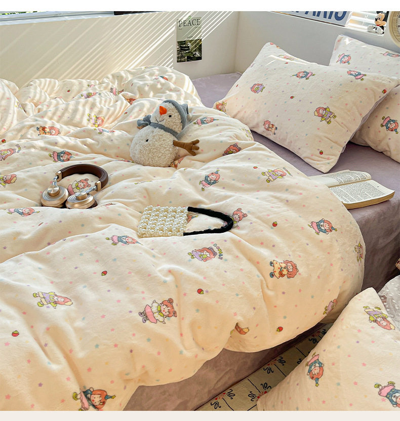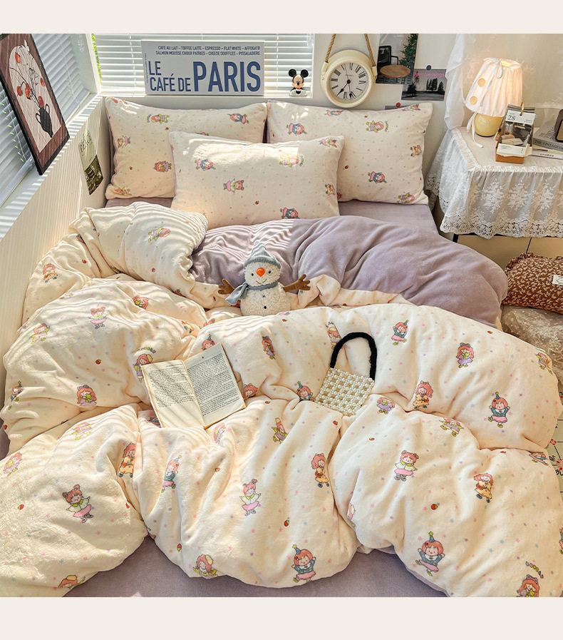 Fresh and Simple Winter Milk Velvet Four-Piece Set, Thickened and Warm Coral Fleece Bed Sheet, Duvet Cover, Fitted Sheet, Student Three-Piece Set