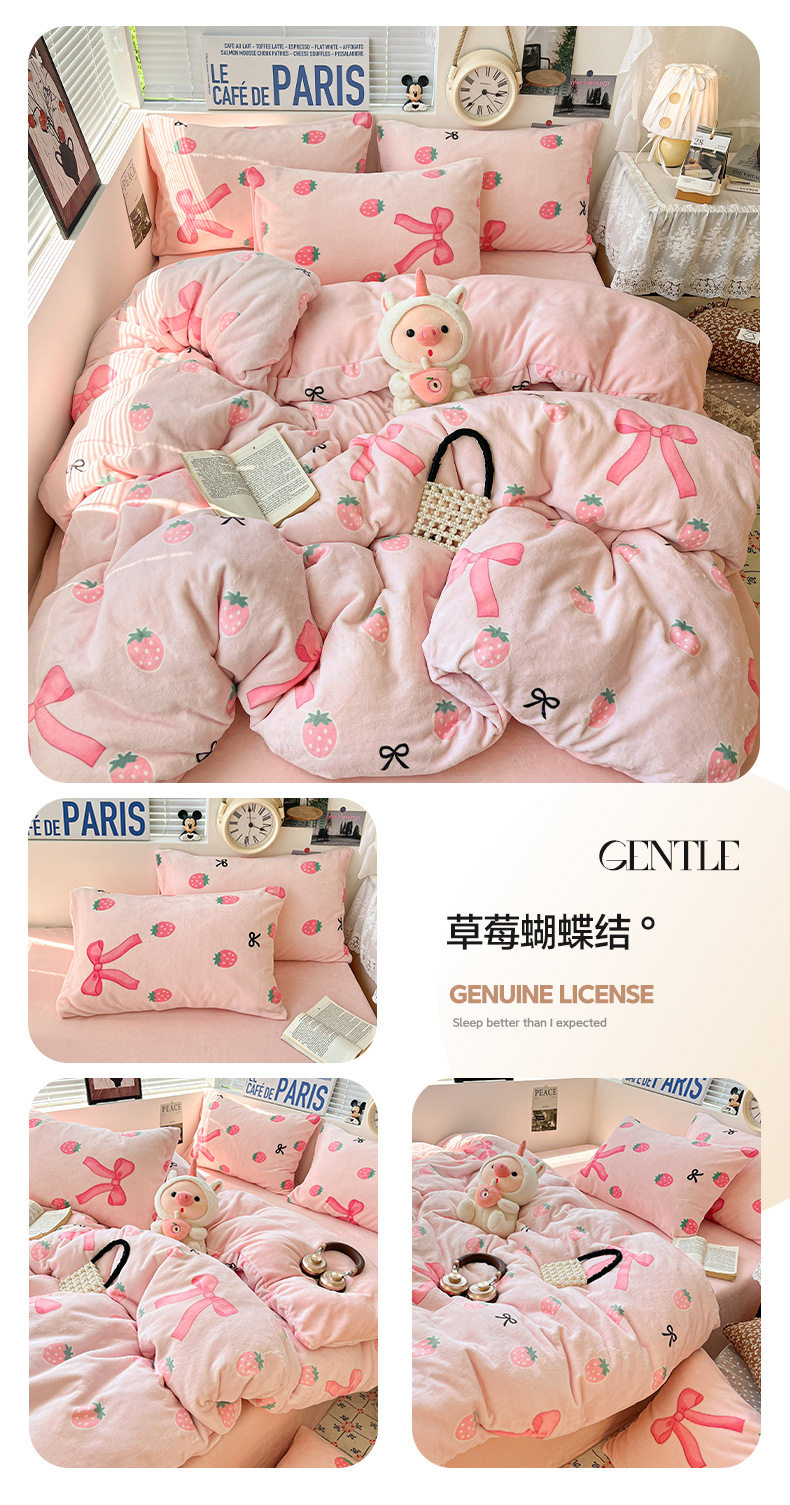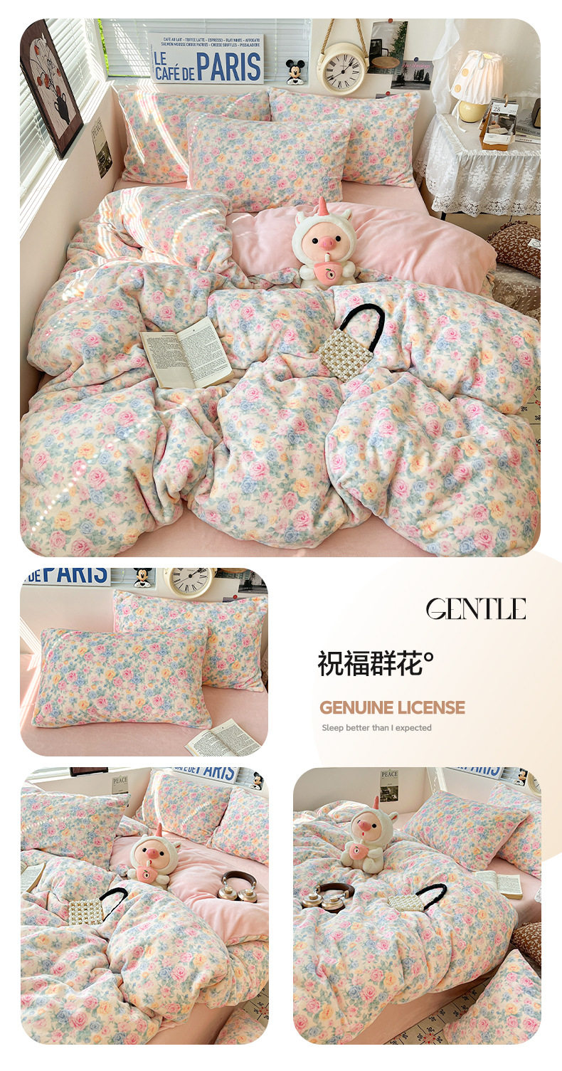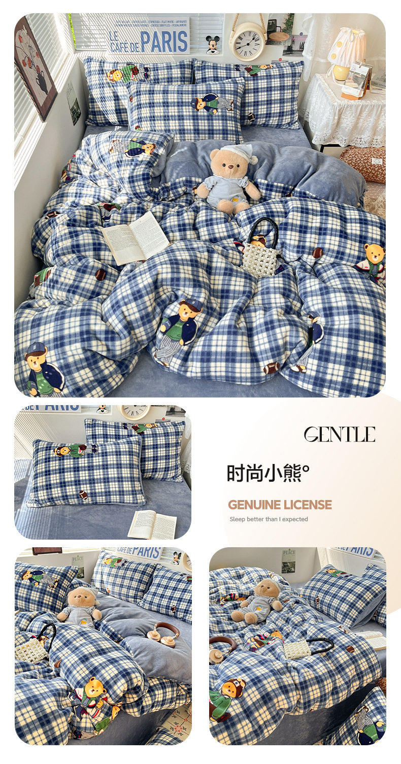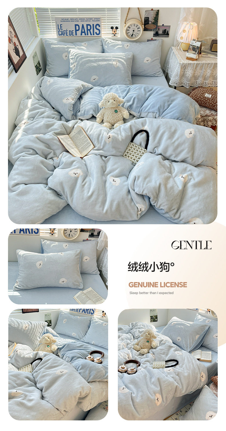 Fresh and Simple Winter Milk Velvet Four-Piece Set, Thickened and Warm Coral Fleece Bed Sheet, Duvet Cover, Fitted Sheet, Student Three-Piece Set