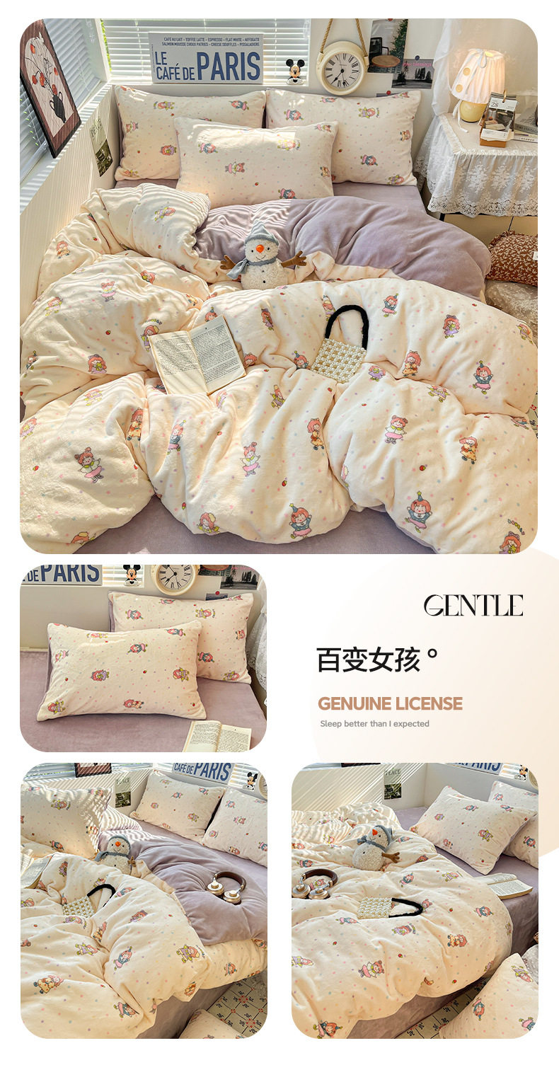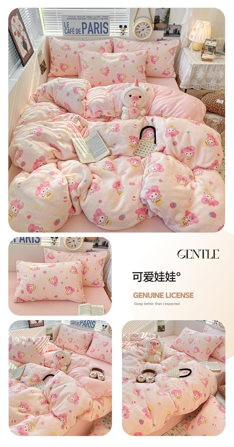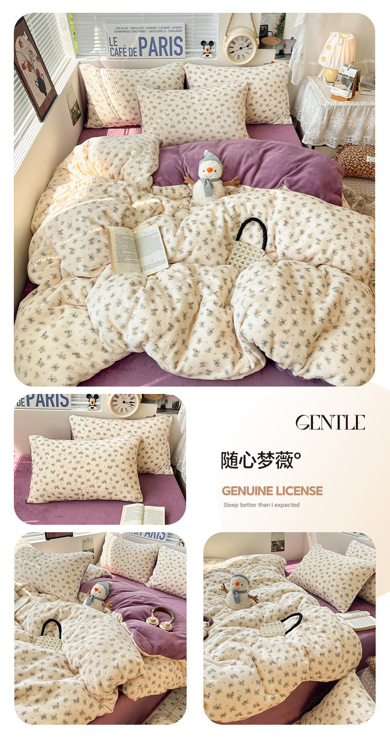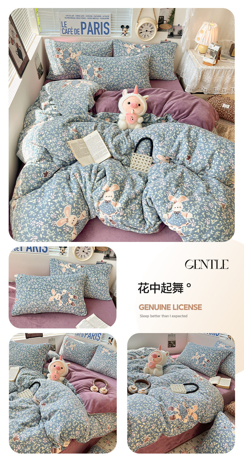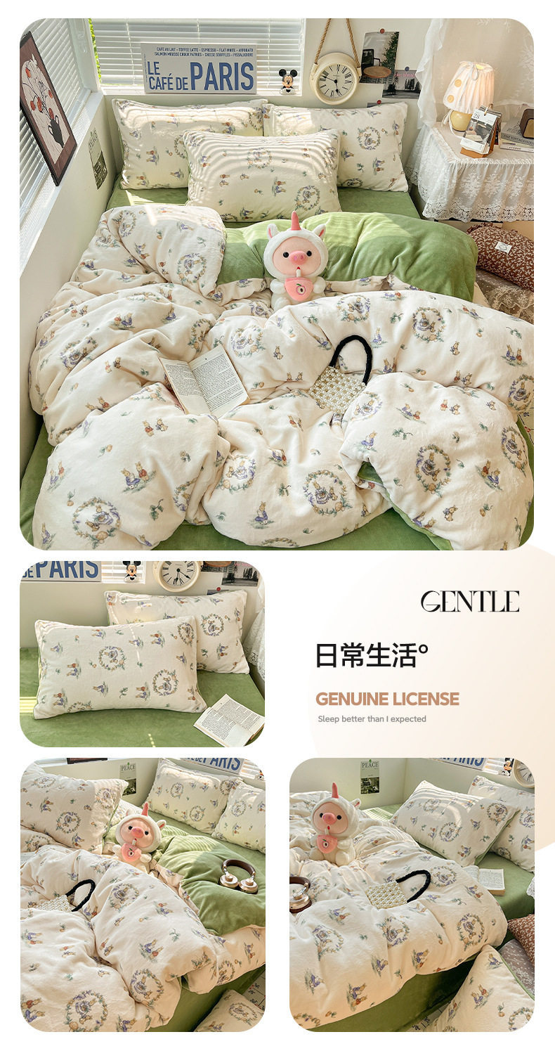 Fresh and Simple Winter Milk Velvet Four-Piece Set, Thickened and Warm Coral Fleece Bed Sheet, Duvet Cover, Fitted Sheet, Student Three-Piece Set