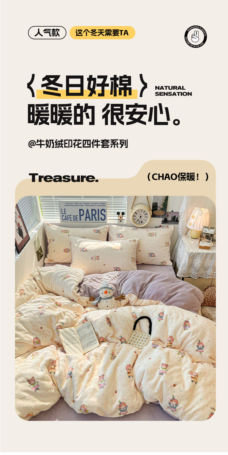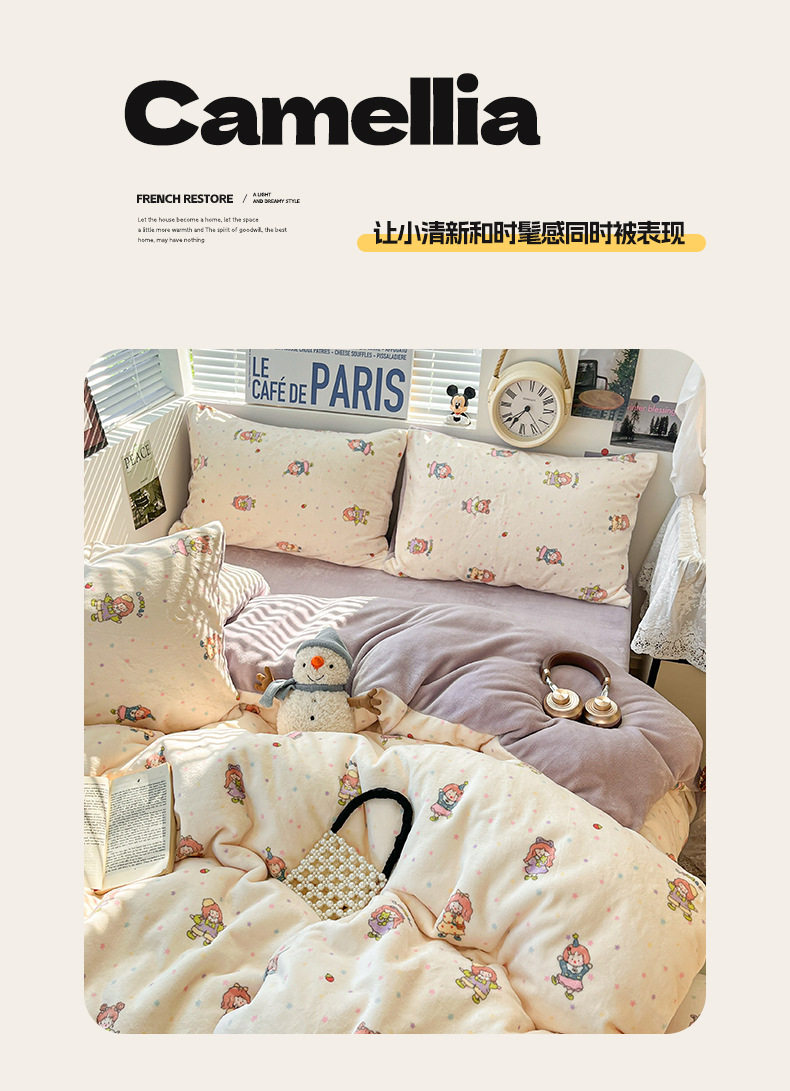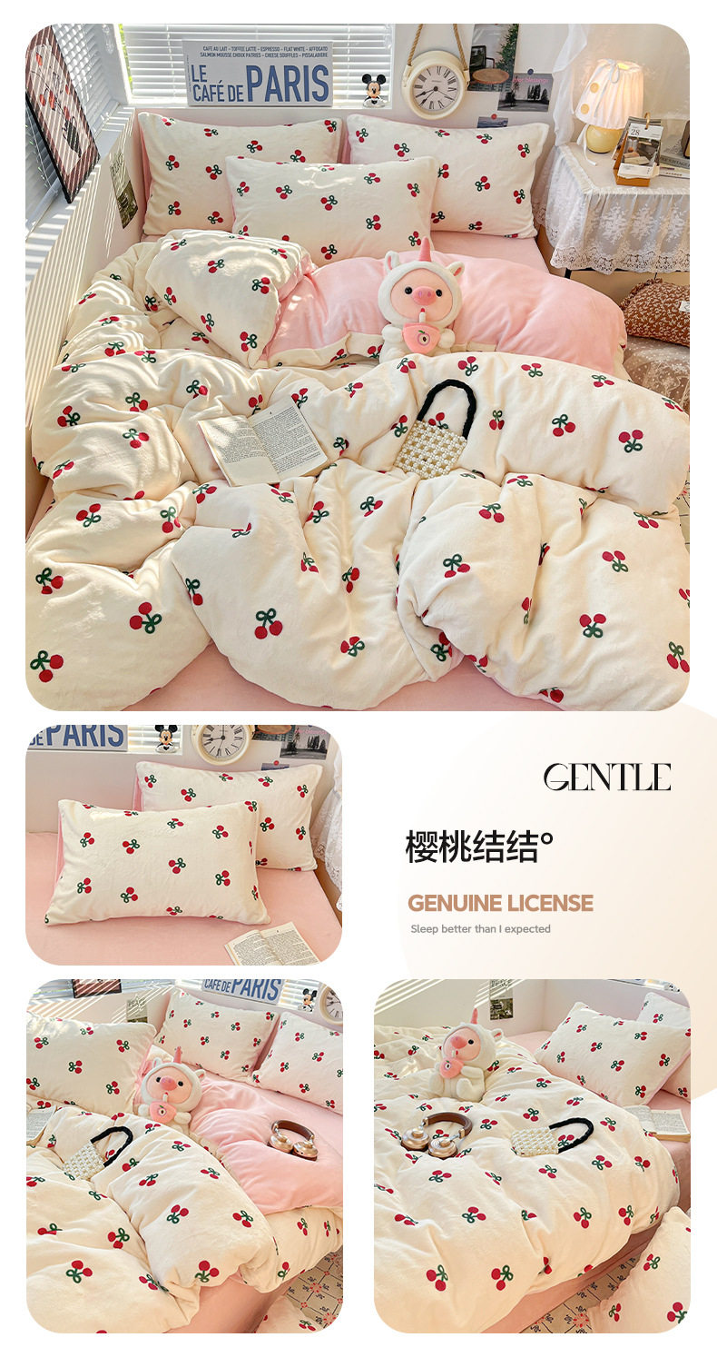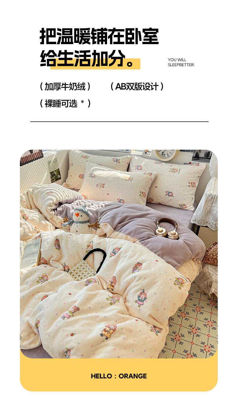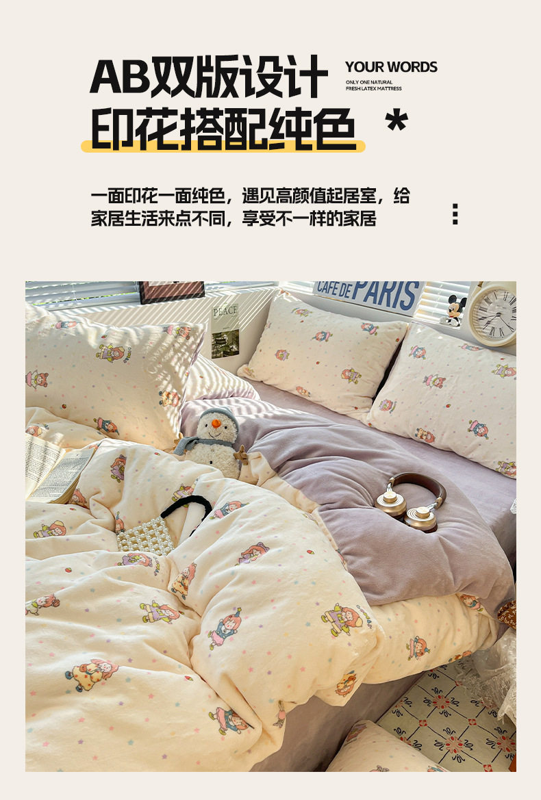 Fresh and Simple Winter Milk Velvet Four-Piece Set, Thickened and Warm Coral Fleece Bed Sheet, Duvet Cover, Fitted Sheet, Student Three-Piece Set