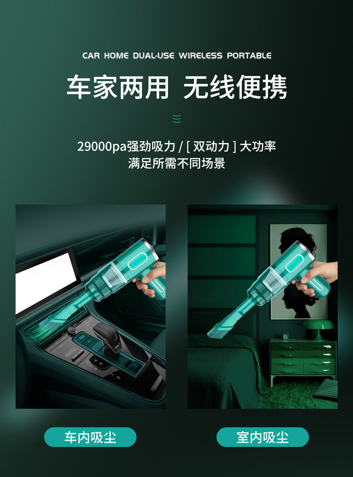 Car Vacuum Cleaner, Powerful Car and Home Dual-Purpose Blowing and Suction All-In-One Machine, Small, Portable, Handheld, Rechargeable, Large Suction and High Power