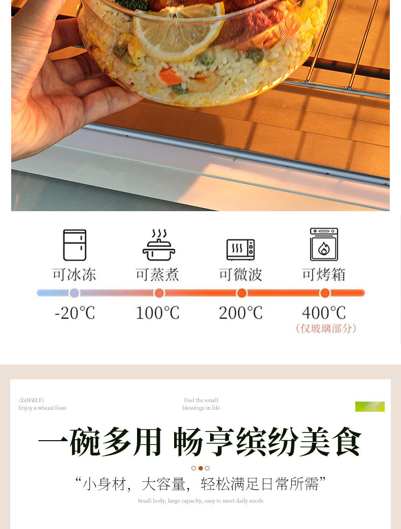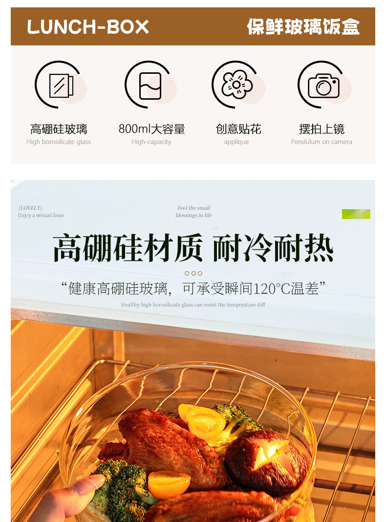 Ultra-Light Glass Lunch Box, Crisper, Microwaveable, Special Bowl with Lid, Sealed Soup and Fruit Lunch Box