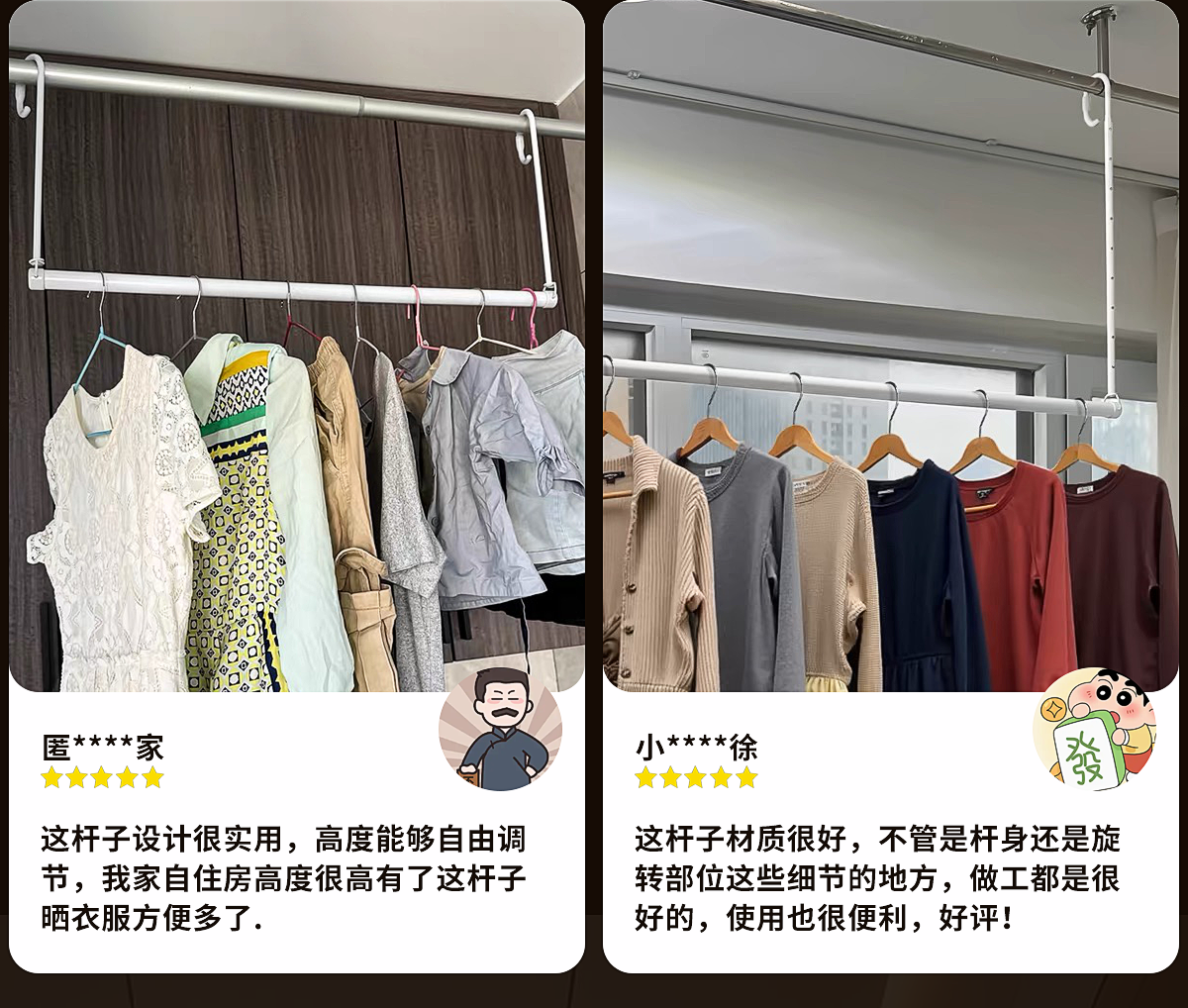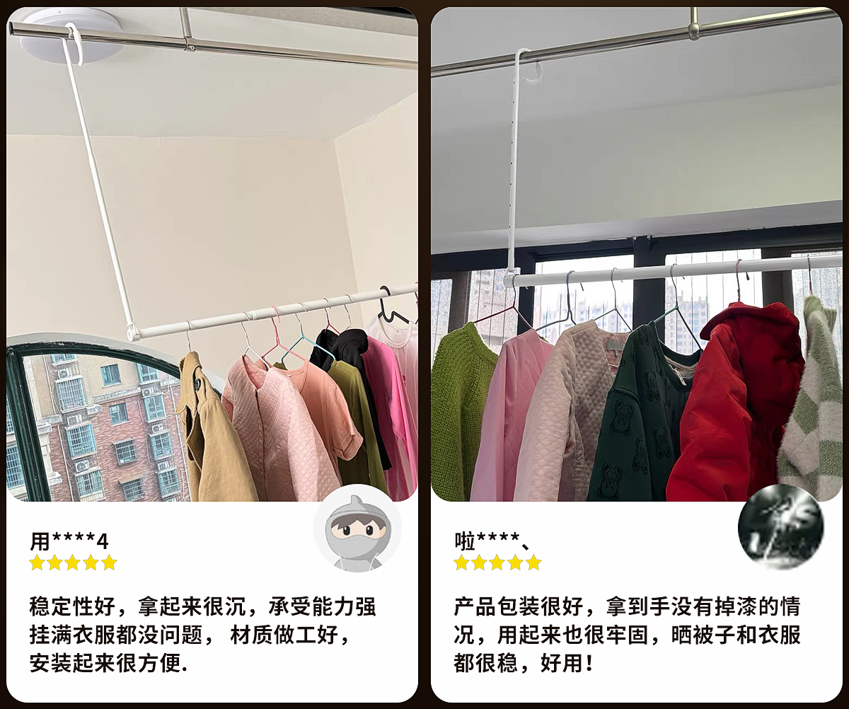 | Color | ★ ☆ [fixed style] length 80cm [thickened and thickened pearl white] ★ ☆,★ ☆ [five-level adjustment] retractable, 80-145cm long [thickened and bold pearl white] ★ ☆,★ ☆ 【7-level adjustable】 extendable length 108-200cm 【thickened & reinforced pearl white】 ★ ☆,★ ☆ [nine-speed adjustment] retractable, length 128-240cm [thickened and thickened pearl white] ★ ☆,★ ☆ [fixed model] length 80cm [thickened and thickened stainless steel] ★ ☆,★ ☆ 【five adjustable settings】 extendable length: 80-145cm 【heavy-duty thickened stainless steel】 ★ ☆,★ ☆ [seven-speed adjustment] retractable, length 108-200cm [thickened stainless steel] ★ ☆,★ ☆ [nine-speed adjustment] retractable, length 128-240cm [thickened stainless steel] ★ ☆,★ ☆ [fixed style] 80cm long [thickened and bold high-grade gray] ★ ☆,★ ☆ 【five adjustable settings】 extendable length: 80-145cm 【premium thickened & reinforced gray】 ★ ☆,★ ☆ 【7-level adjustable】 extendable length 108-200cm 【thickened & reinforced premium grey】 ★ ☆,★ ☆ [nine-speed adjustment] retractable, length 128-240cm [thickened and high-grade gray] ★ ☆,★ ☆ 【fixed style】length 80cm 【thickened & reinforced pearl white】with grooves ★ ☆,★ ☆ 【five adjustable settings】 extendable length: 80-145cm 【thickened & reinforced pearl white】 with grooved design ★ ☆,★ ☆ [seven-speed adjustment] retractable, length 108-200cm [thickened and bold pearl white] with grooves ★ ☆,★ ☆ [nine-speed adjustment] retractable, length 128-240cm [thickened and thickened pearl white] with grooves ★ ☆,★ ☆ 80cm long fixed model [upper and lower clothes drying rod set] ★ ☆,★ ☆ [five-level adjustment] retractable, length 80-145cm [upper and lower clothes drying rod set] ★ ☆,★ ☆ [seven-speed adjustment] retractable, length 108-200cm [upper and lower clothes drying rod set] ★ ☆,★ ☆ [nine-speed adjustment] retractable, length 128-240cm [upper and lower clothes drying rod set] ★ ☆ |