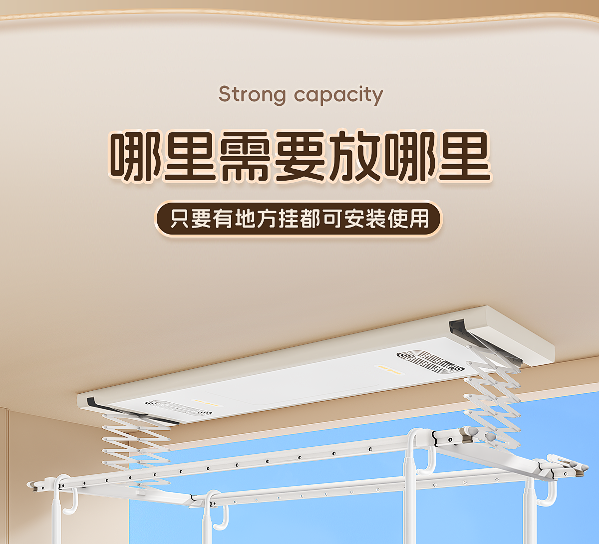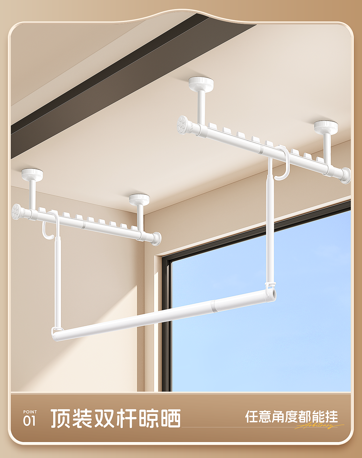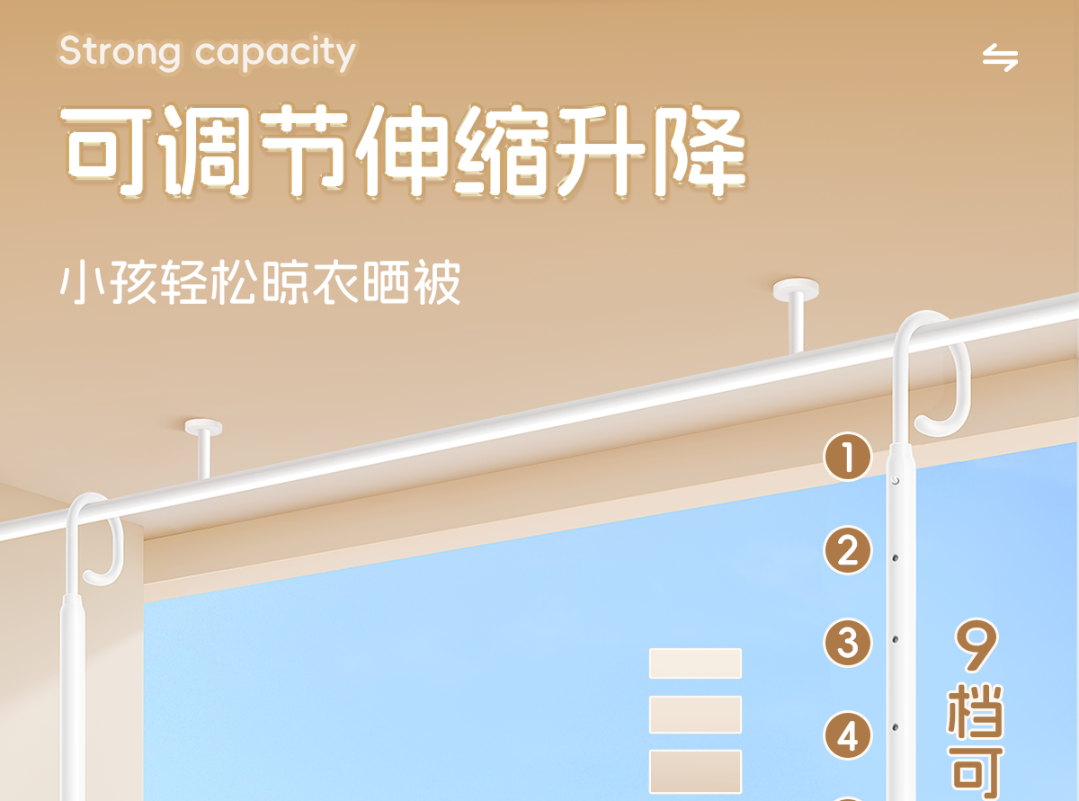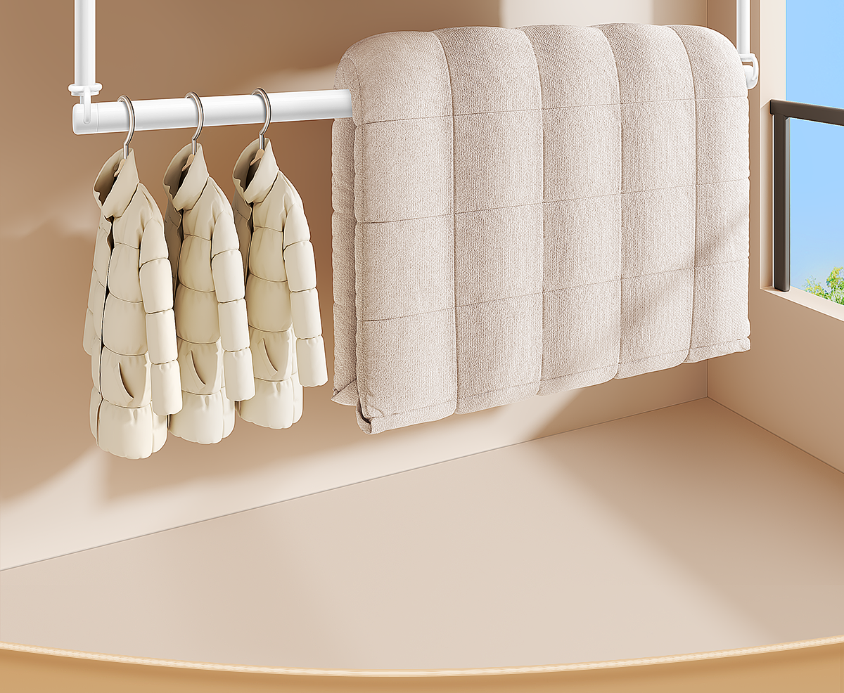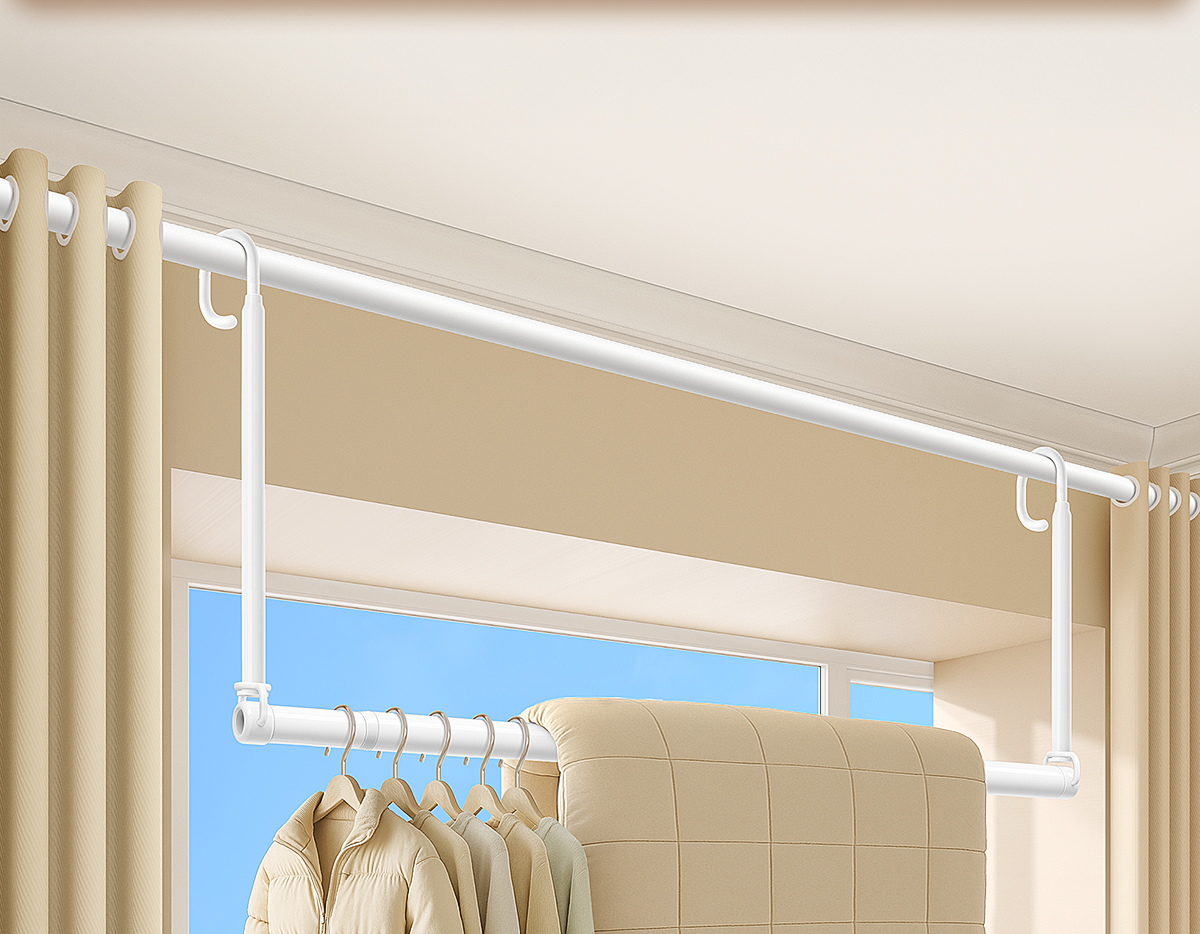 Balcony Household No-Drill Retractable Clothes Drying Rack Rod, a Retractable Lifting Hanging Rod for Drying Quilts
