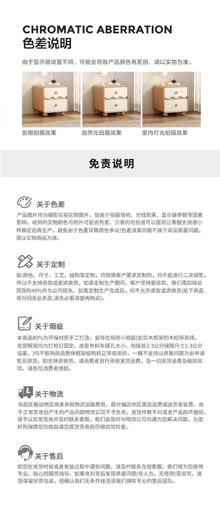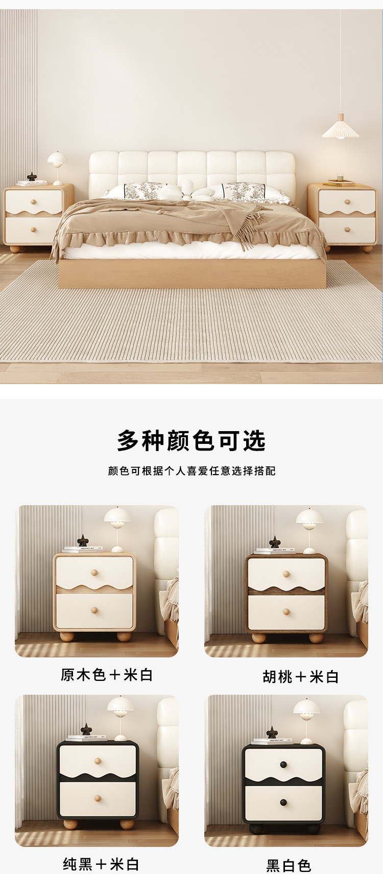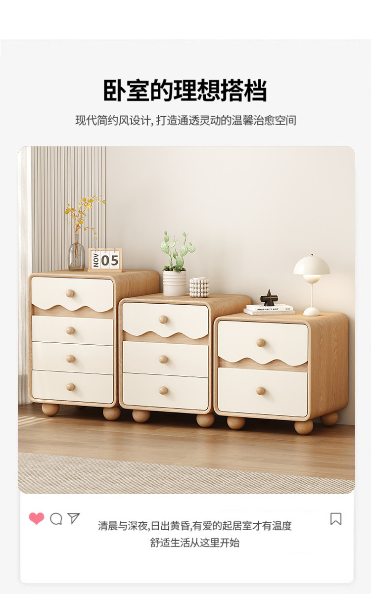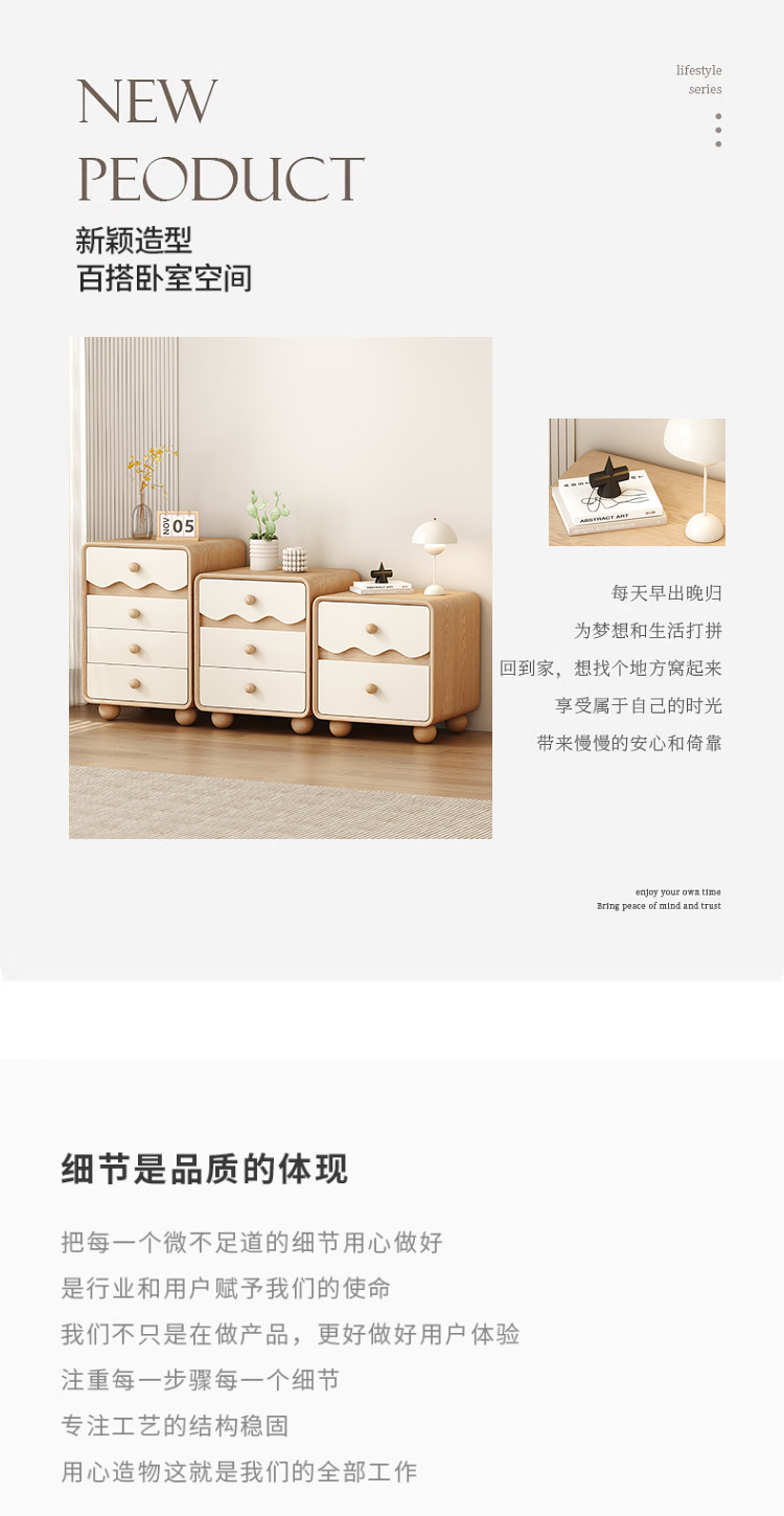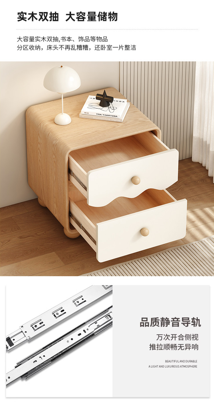 | Bedside table cream style | Bedside table with a light luxury and high-end feel |