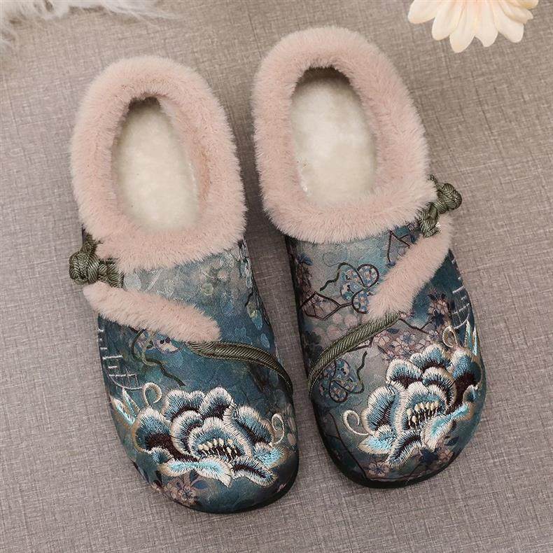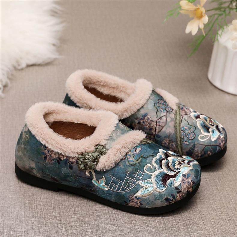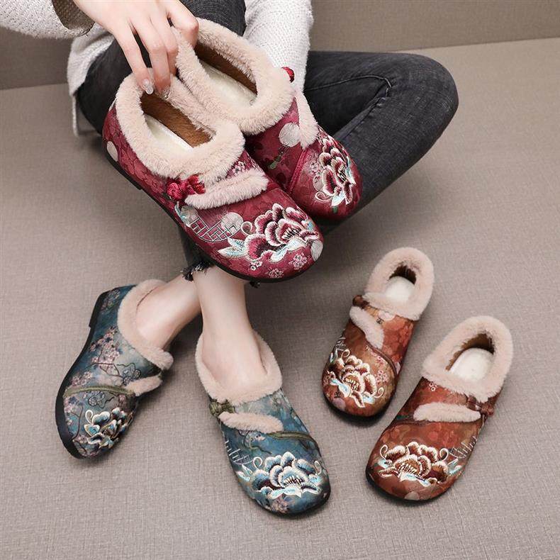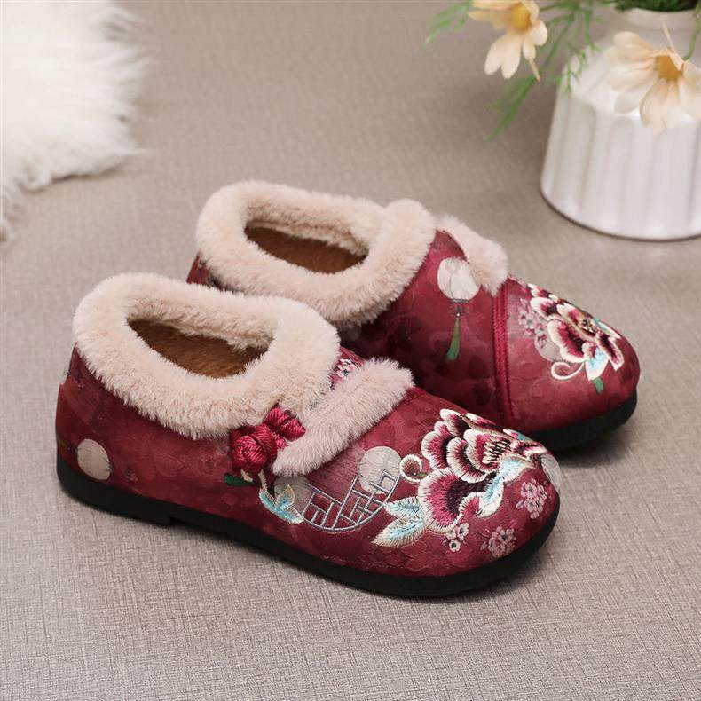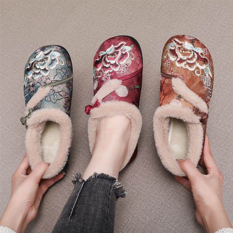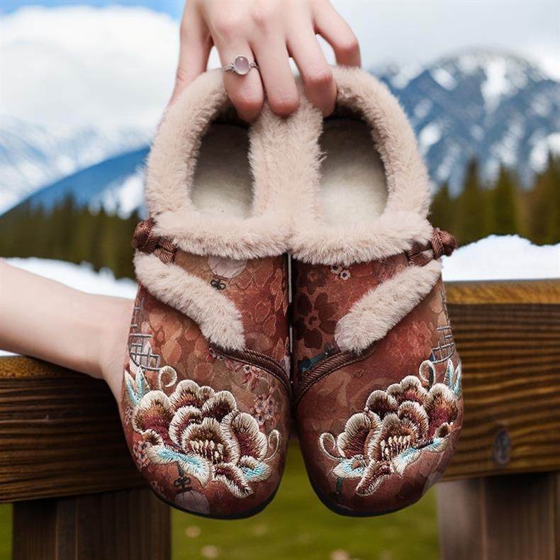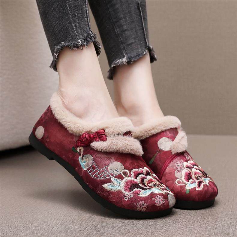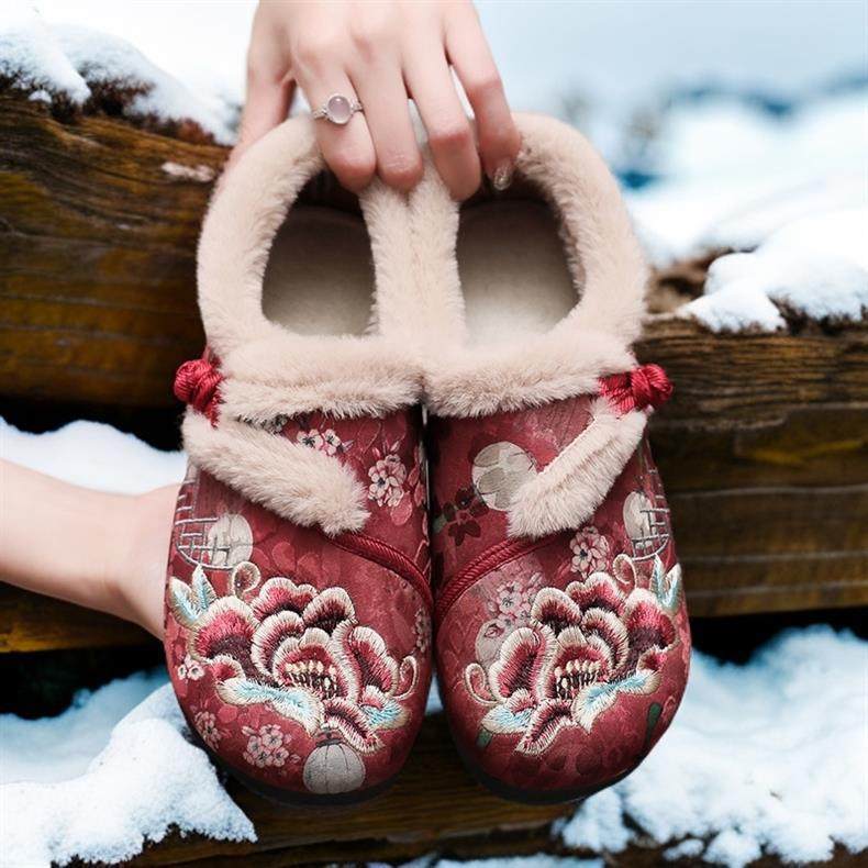 New Winter Beijing Cotton Shoes, Thickened Ethnic Middle-Aged and Elderly Soft-Soled Mother's Chinese Han Dynasty Embroidered Shoes for Women