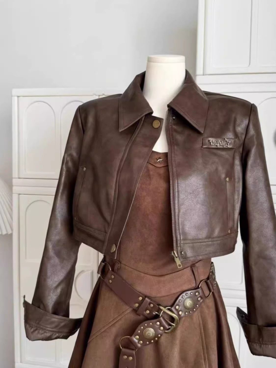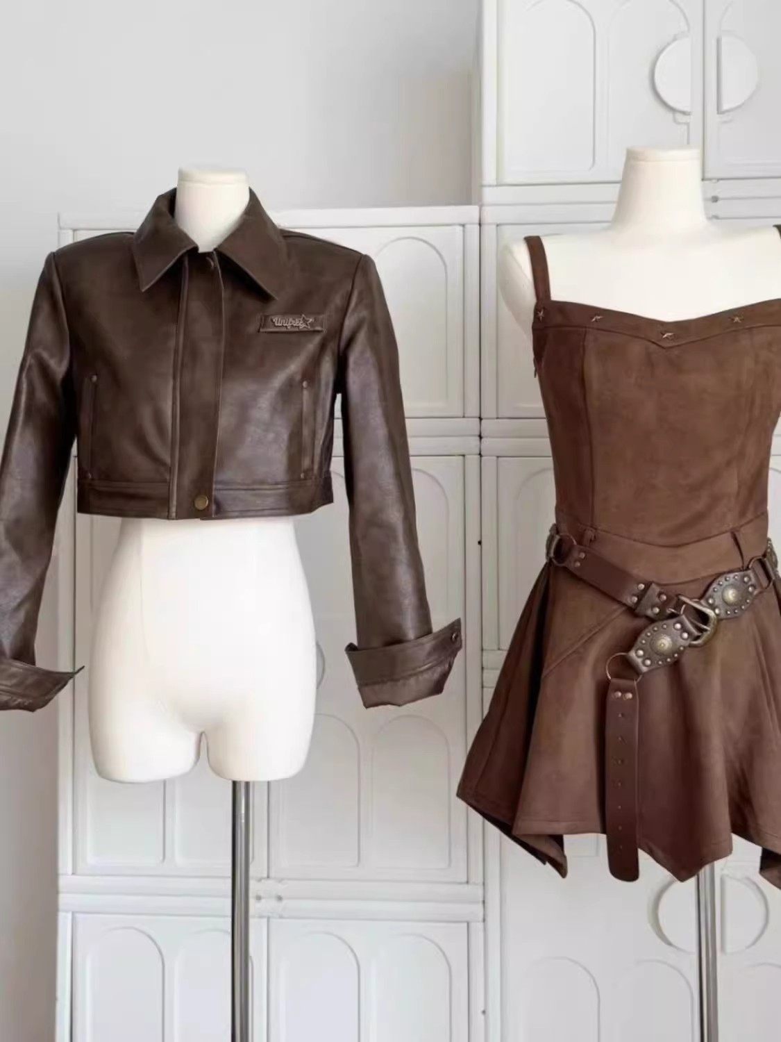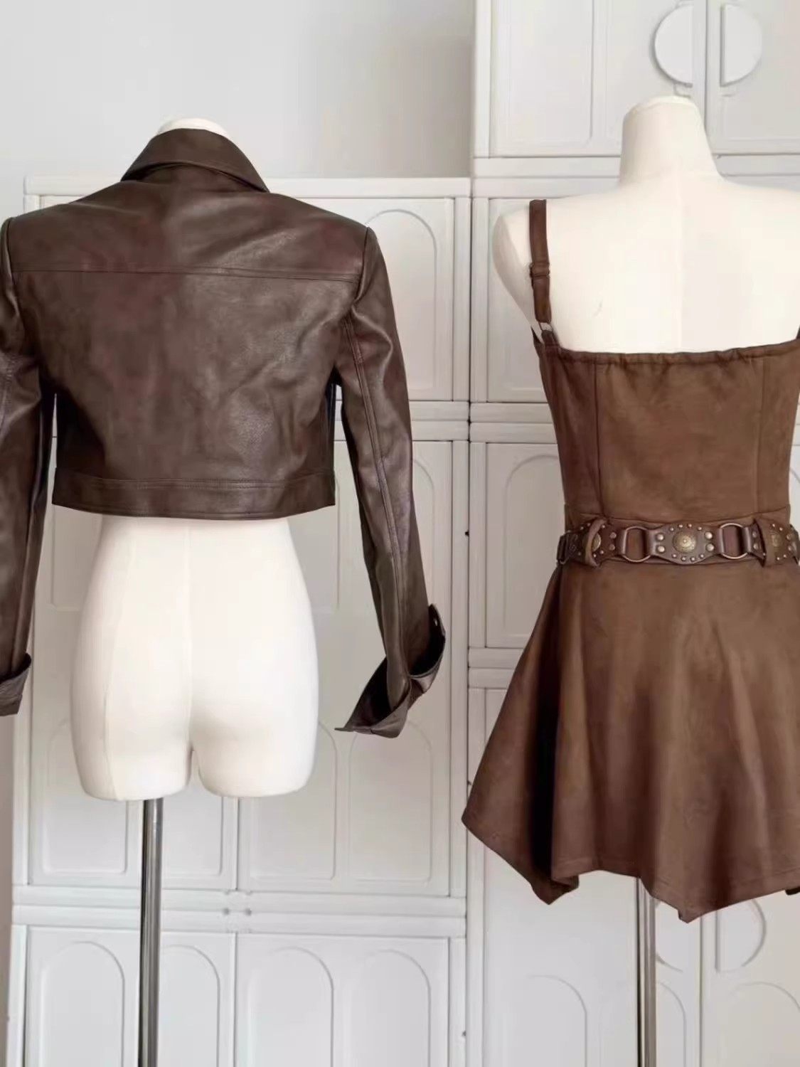 | Color | Brown leather jacket*891,Brown dress with belt*891 |