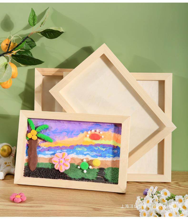 2025 Solid Wood Clay Picture Frame Framed Clay Photo Frame Handmade Material Wooden Frame Colored Mud Work Display Empty Frame Mirror Frame