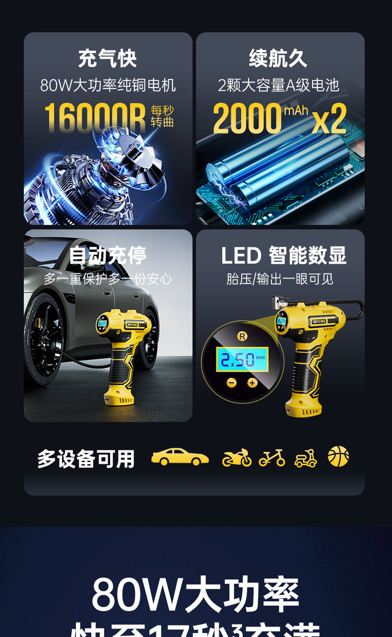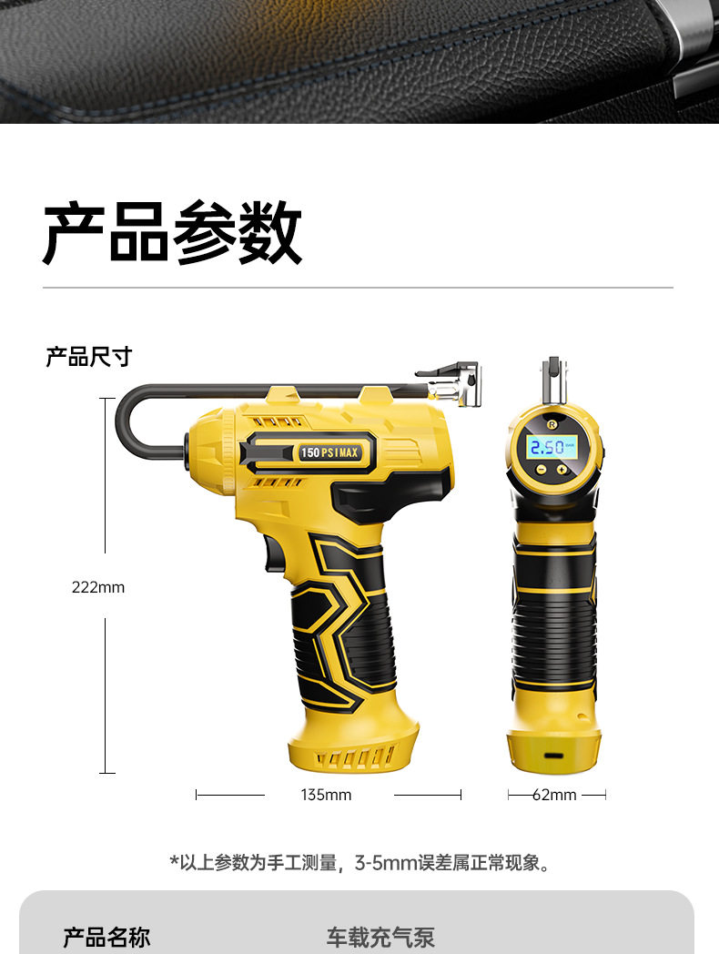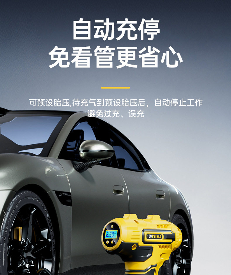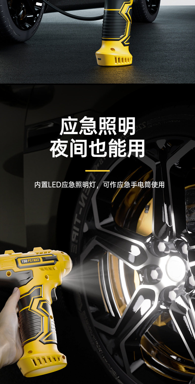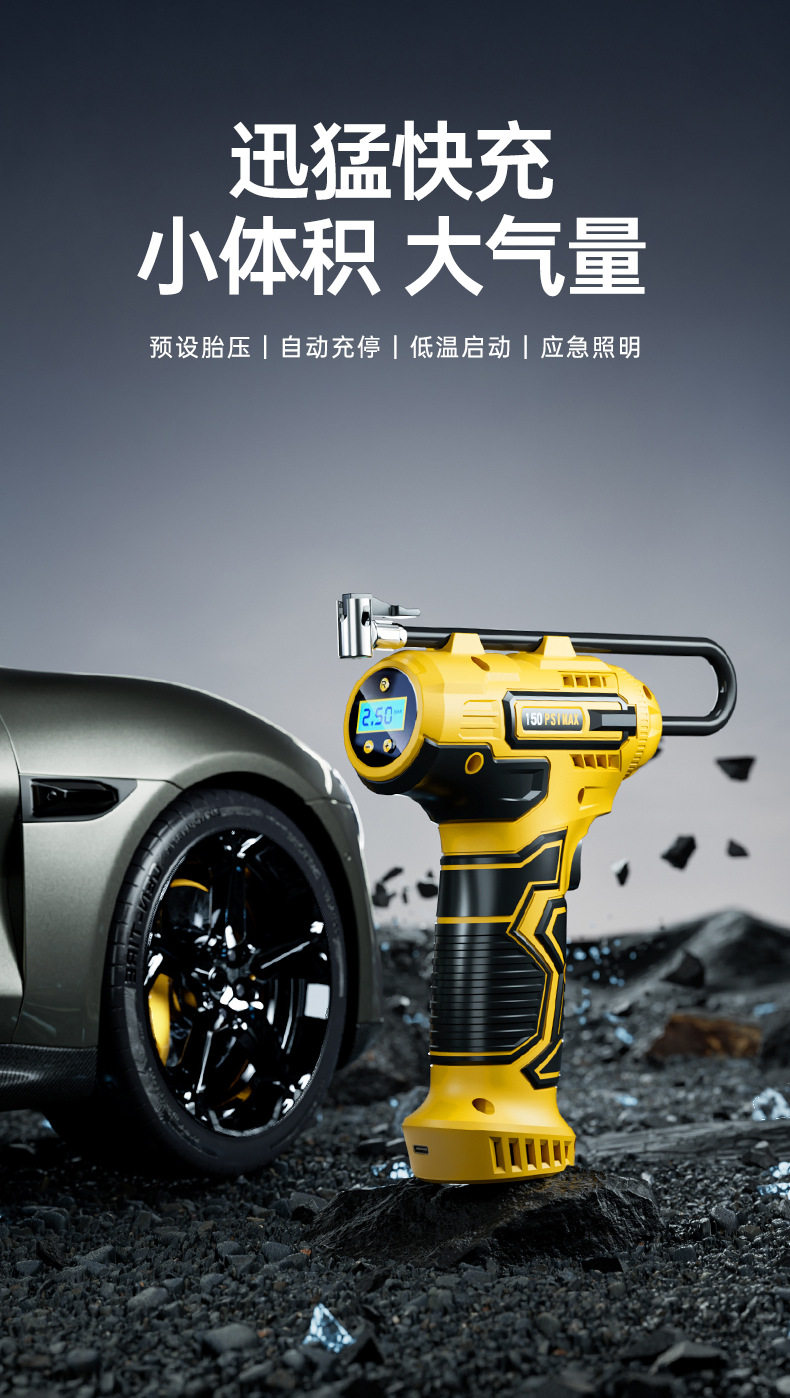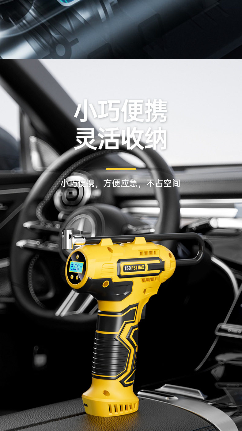 Wireless Car Air Pump Portable Electric Car Tire Pump with Digital Tire Pressure Gauge
