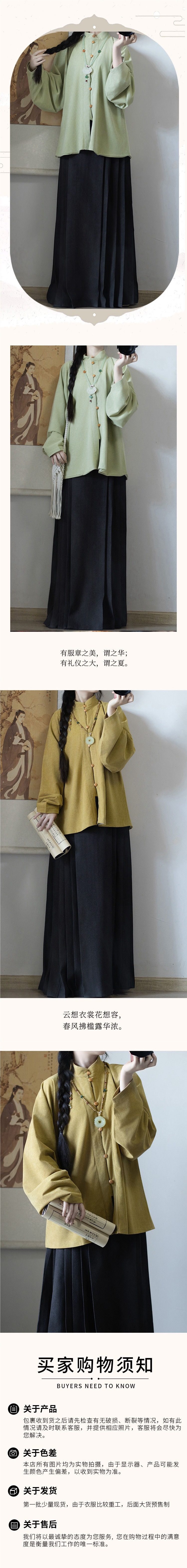 Light Shirt Style: Ming Dynasty Autumn and Winter Thickened Fleece Stand Collar Double-Breasted Bow Pocket Sleeve Short Jacket with Mamian Skirt for Daily Commuting Hanfu