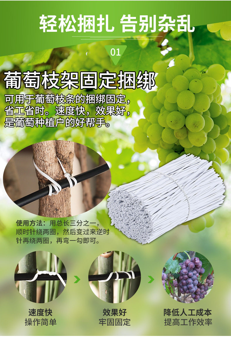 Electro-Galvanized Plastic-Coated Thin Iron Wire Wire and Cable Ties Soft Ties Plastic Ties for Binding Grape Vine Branches