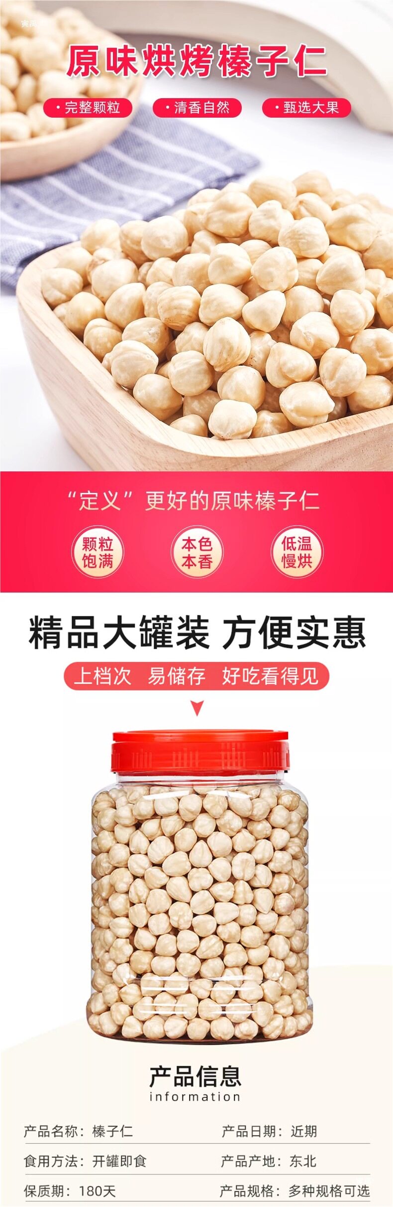 | Packaging specifications | 【new in 2024】hazelnut kernels 2.5kg net content,[original flavor·half a pound] hazelnuts (260g in total),【original flavor· 0.5kg 】hazelnuts (520g in total),【original· 1.0kg 】hazelnuts (1040g in total),(large) hazelnut kernels (260g in total),Total 520g (large) hazelnut kernels,"(large) hazelnut kernels (780g in total)",(large) hazelnut kernels (1040g in total),【new in 2024】hazelnut 1.5kg net content,【new in 2024】hazelnut 2.5kg net content,【new in 2024】hazelnut kernels 1.5kg net content,[bag] hazelnut net weight 250g,[bag] hazelnut kernels net weight 250g,【new in 2024】hazelnut: 10g,Hazelnut kernels + hazelnuts 260g each,Hazelnut kernels + chopped hazelnuts 260g each,Hazelnut + crushed hazelnut 260g each,Hazelnut kernels + hazelnuts 520g each,Hazelnut kernels + chopped hazelnuts 520g each,Hazelnut + crushed hazelnut 520g each,Hazelnut kernels + hazelnuts + chopped hazelnuts 260g each |