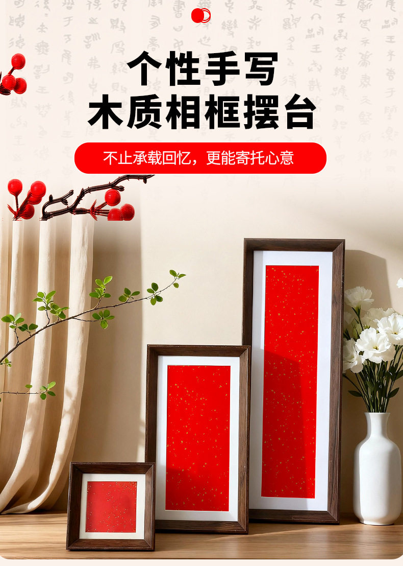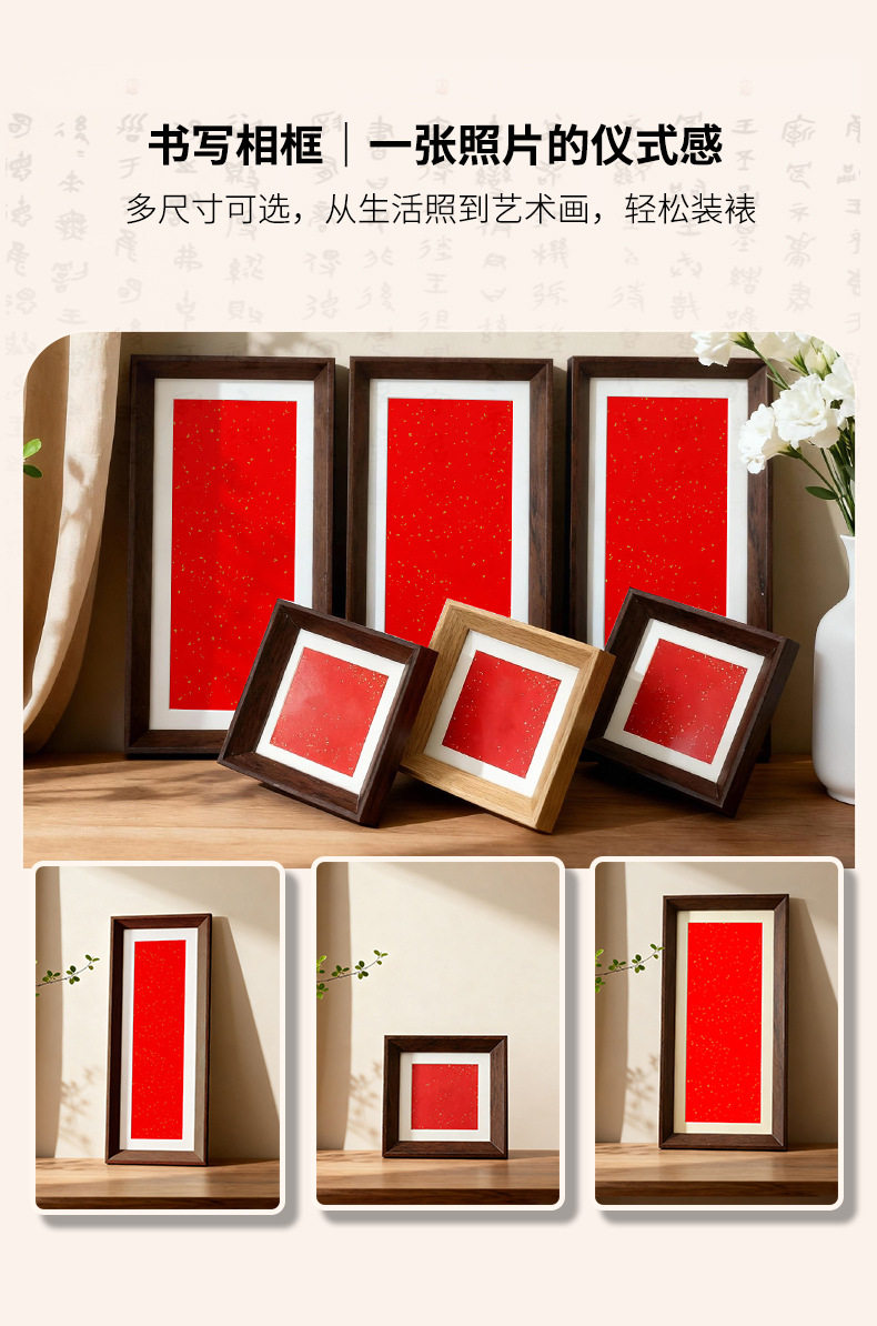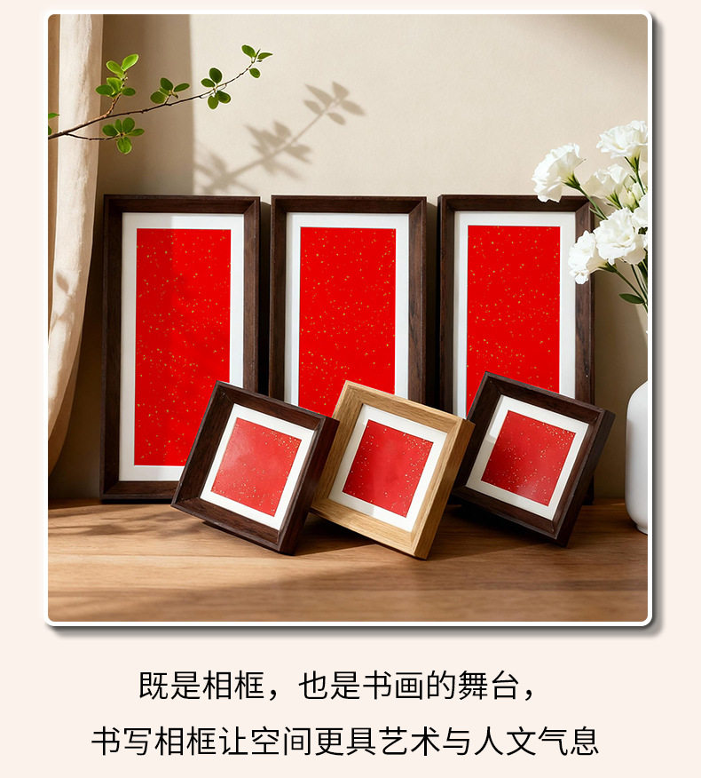 New Chinese Calligraphy Hollow Photo Frame Wooden Brush Calligraphy and Painting Rice Paper Gold Paper DIY Picture Frame Mounting Table