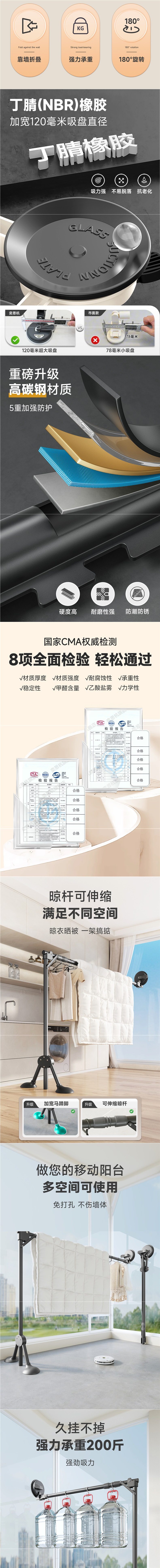 | Color | [enhanced version - 3 times suction power] cream white 0.6- 0.95m telescopic. foldable. 180 degree rotation. load bearing 100kg,Thickened nitrile rubber suction cup. exclusive 20-year free replacement,Five-star store certification [drop guarantee, worry-free shopping],No drilling required. just stick it on and you're good to go. if it falls off, get a "0" yuan refund,[enhanced version - 3 times suction power. height adjustment] honor black 1.4- 2.4m telescopic. foldable. 180 degree rotation. load bearing 100kg,[enhanced version - 3 times suction power. height adjustment] honor black 1.1 - 1.8m telescopic. foldable. 180 degree rotation. load bearing 100kg,[enhanced version - 3 times suction power. height adjustment] honor black 0.8- 1.1m telescopic. foldable. 180 degree rotation. load bearing 100kg,[enhanced version - 3 times suction power] honor black 1.4- 2.4m telescopic. foldable. 180 degree rotation. load bearing 100kg,[enhanced version - 3 times suction power] honor black 1.1- 1.8m telescopic. foldable. 180 degree rotation. load bearing 100kg,[enhanced version - 3 times suction power] honor black 0.8- 1.1m telescopic. foldable. 180 degree rotation. load bearing 100kg,[enhanced version - 3 times suction power. height adjustable] cream white 1.4- 2.4m telescopic. foldable. 180 degree rotation. load bearing 100kg,[enhanced version - 3 times suction power. height adjustable] cream white 1.1- 1.8m telescopic. foldable. 180 degree rotation. load bearing 100kg,[enhanced version - 3 times suction power. height adjustable] cream white 0.8- 1.1m telescopic. foldable. 180 degree rotation. load bearing 100kg,[enhanced version - 3 times suction power] cream white 1.4- 2.4m telescopic. foldable. 180 degree rotation. load bearing 100kg,[enhanced version - 3 times suction power] cream white 1.1- 1.8m telescopic. foldable. 180 degree rotation. load bearing 100kg,[enhanced version - 3 times suction power] cream white 0.8- 1.1m telescopic. foldable. 180 degree rotation. load bearing 100kg,[no punching/punching. height adjustment] cream white 1.4- 2.4m telescopic. foldable. card slot design. removable. does not take up space,[no punching/punching. height adjustment] cream white 1.1- 1.8m telescopic. foldable. card slot design. removable. does not take up space,[no punching/punching. height adjustment] cream white 0.8- 1.08m telescopic. foldable. card slot design. removable. does not take up space |