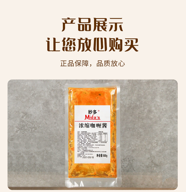 Miaoduo Concentrated Curry Sauce 500g Fried Rice Beef Chicken Rice Seasoning Yellow Curry Chicken Nuggets Fish Egg Seasoning for Commercial Use