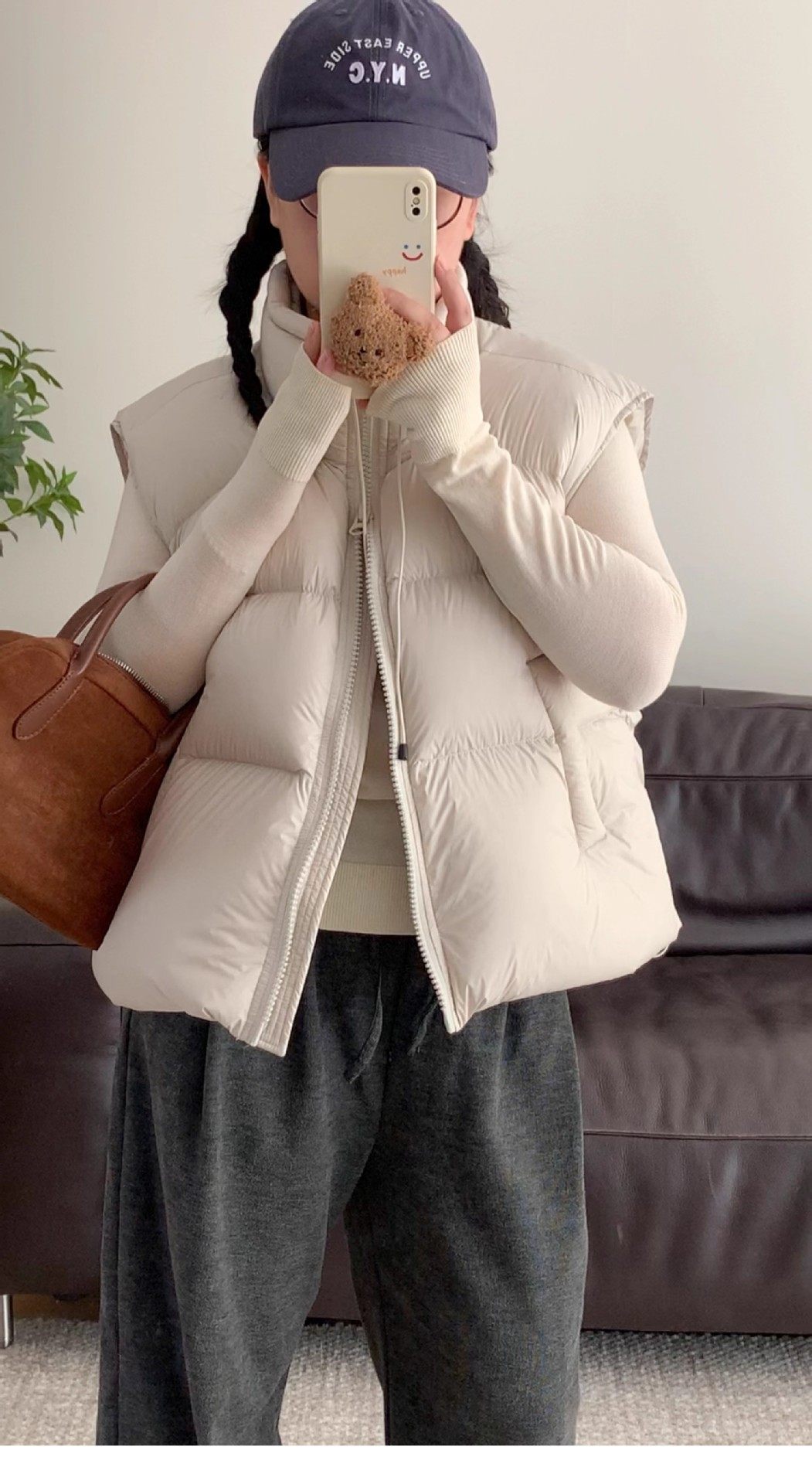 2025 New White Duck down Puffer Vest Women's Stand Collar Petite Coat Versatile Warm