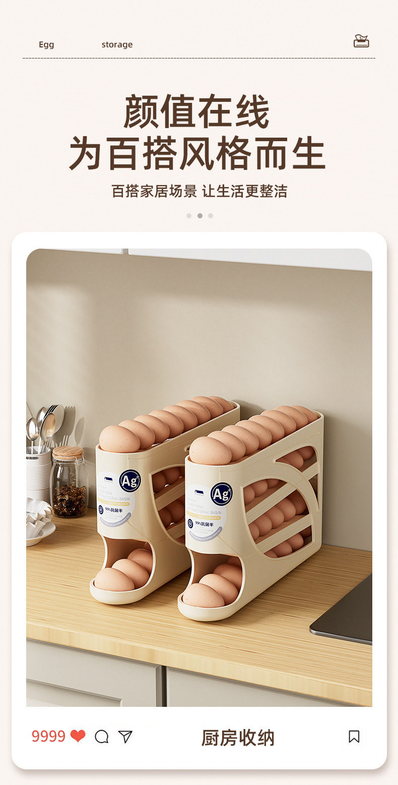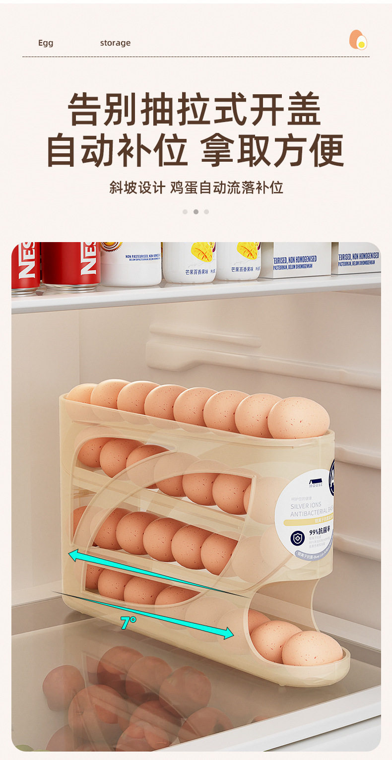 Rolling Egg Storage Box Household Multi-Layer Inclined Automatic Egg Rolling Box Refrigerator Side Door Organizer Box Egg Holder