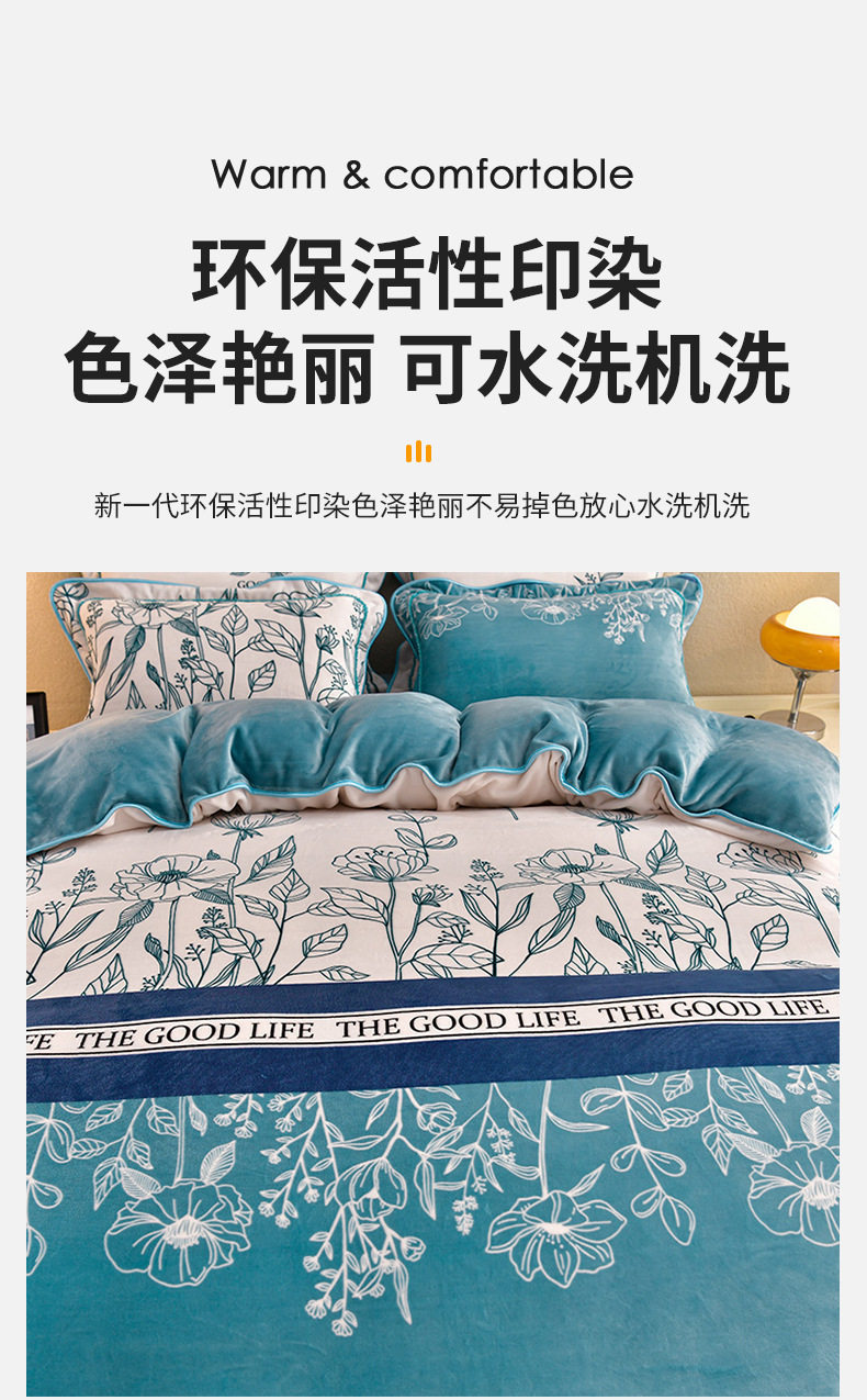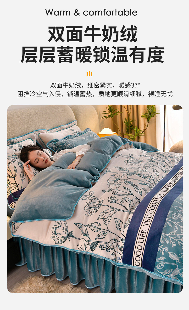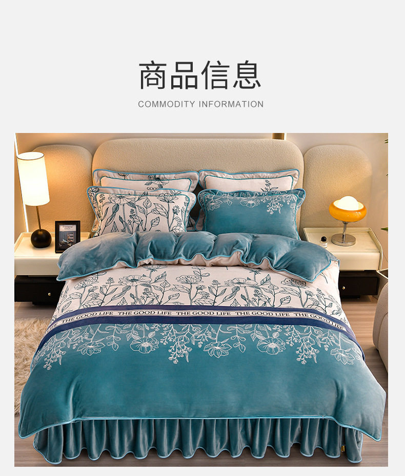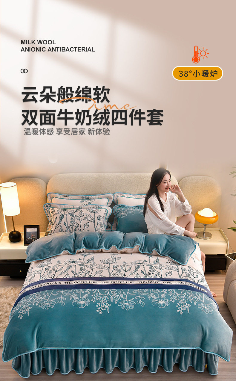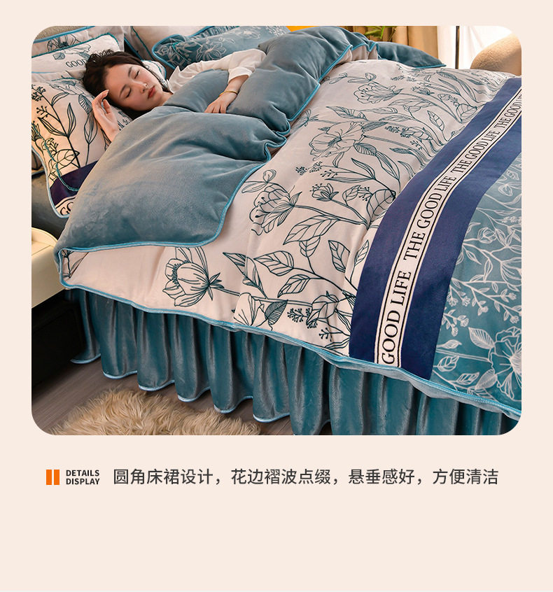 Class a Thickeneded Milk Velvet Four-Piece Autumn and Winter Cartoon Bed Skirt Quilt Cover Double-Sided Coral Velvet Bed Three-Piece Quilt Cover