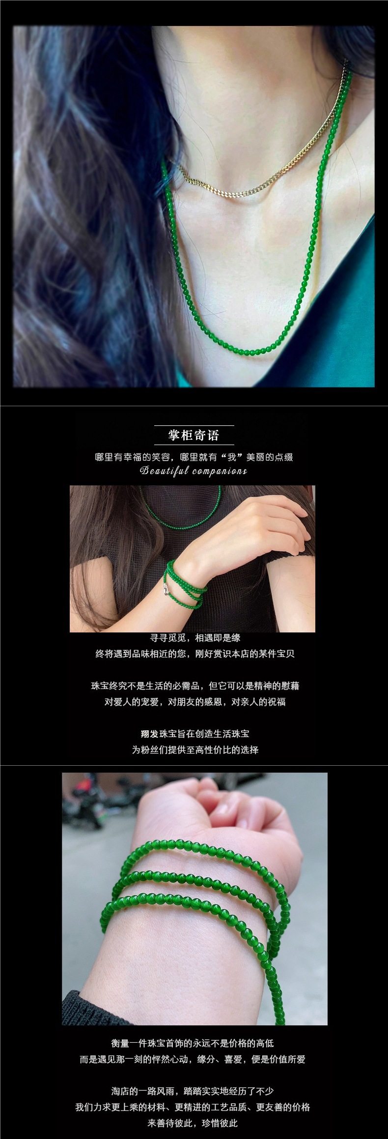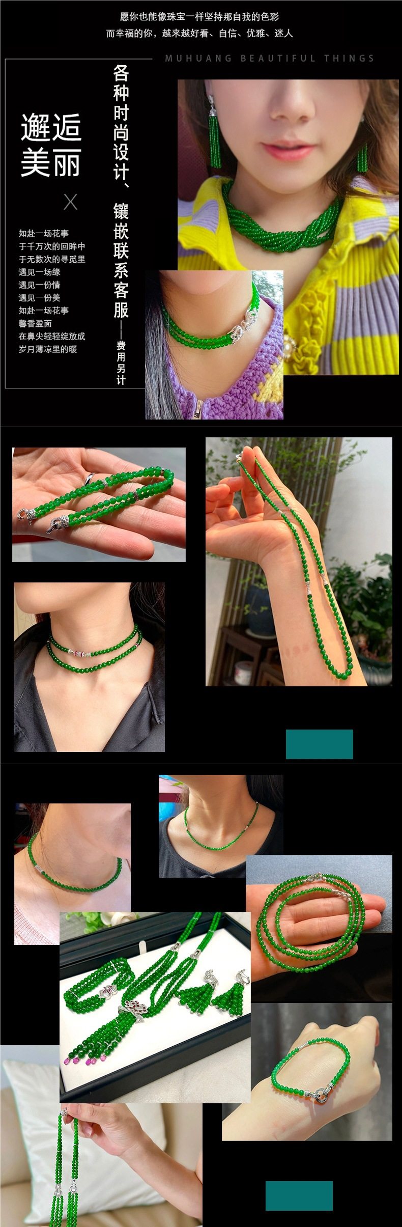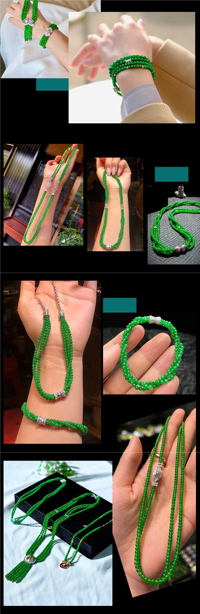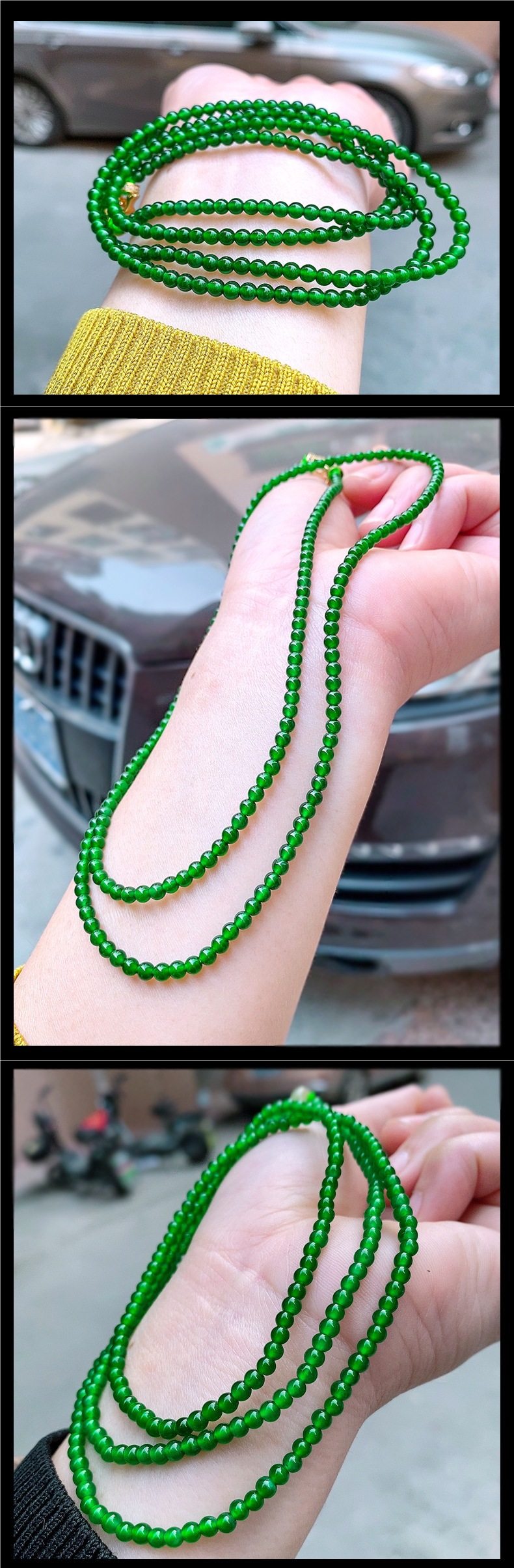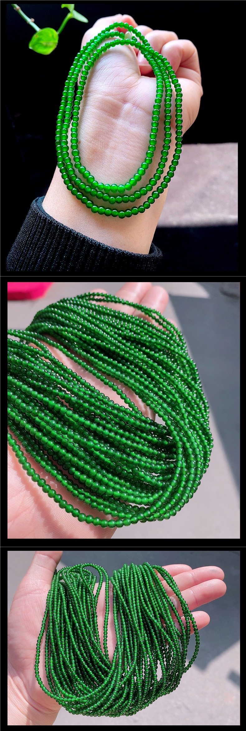 4 Natural Jadeite Green Jade Millet Bead Necklace for Women, High Ice Type Jadeite Round Bead Necklace, Hot Color Jadeite