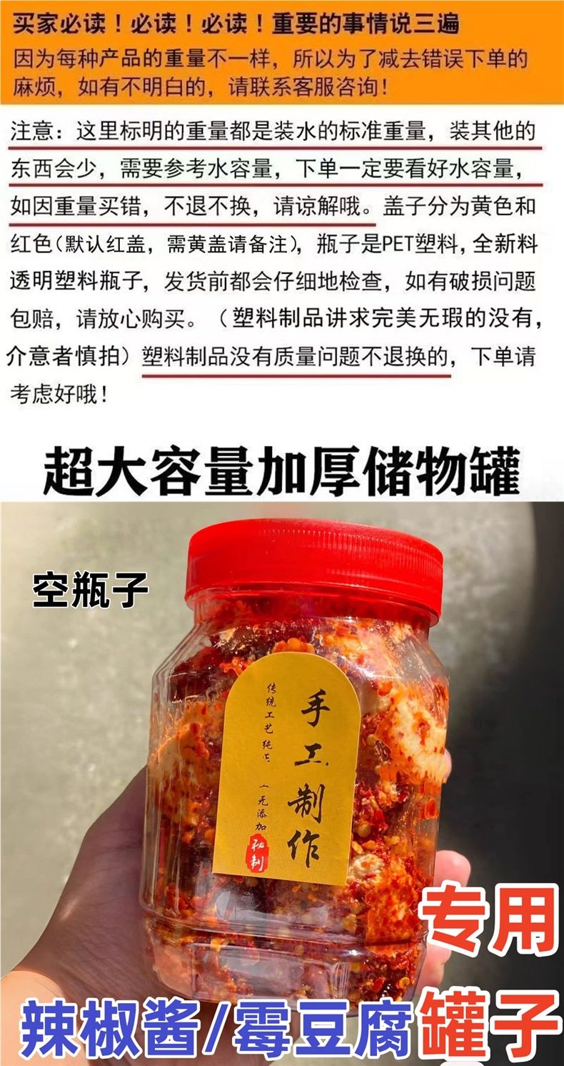 Tofu Jar Plastic Bottle Empty Bottle Food Grade Sealed Jar Mold Tofu Jar Chili Sauce Packaging Bottle Transparent