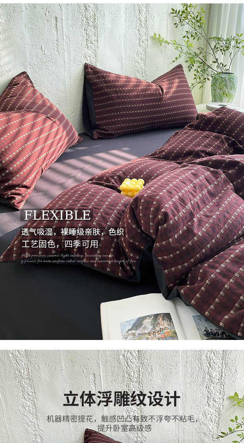 Pure Cotton Four-Piece Set Pure Cotton Yarn-Dyed Washed Cotton Quilt Cover 2025 New Bedding Three-Piece Set Bed Bed Sheets Quilt Cover