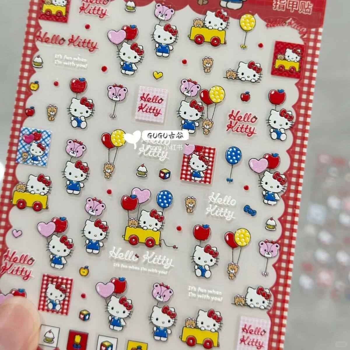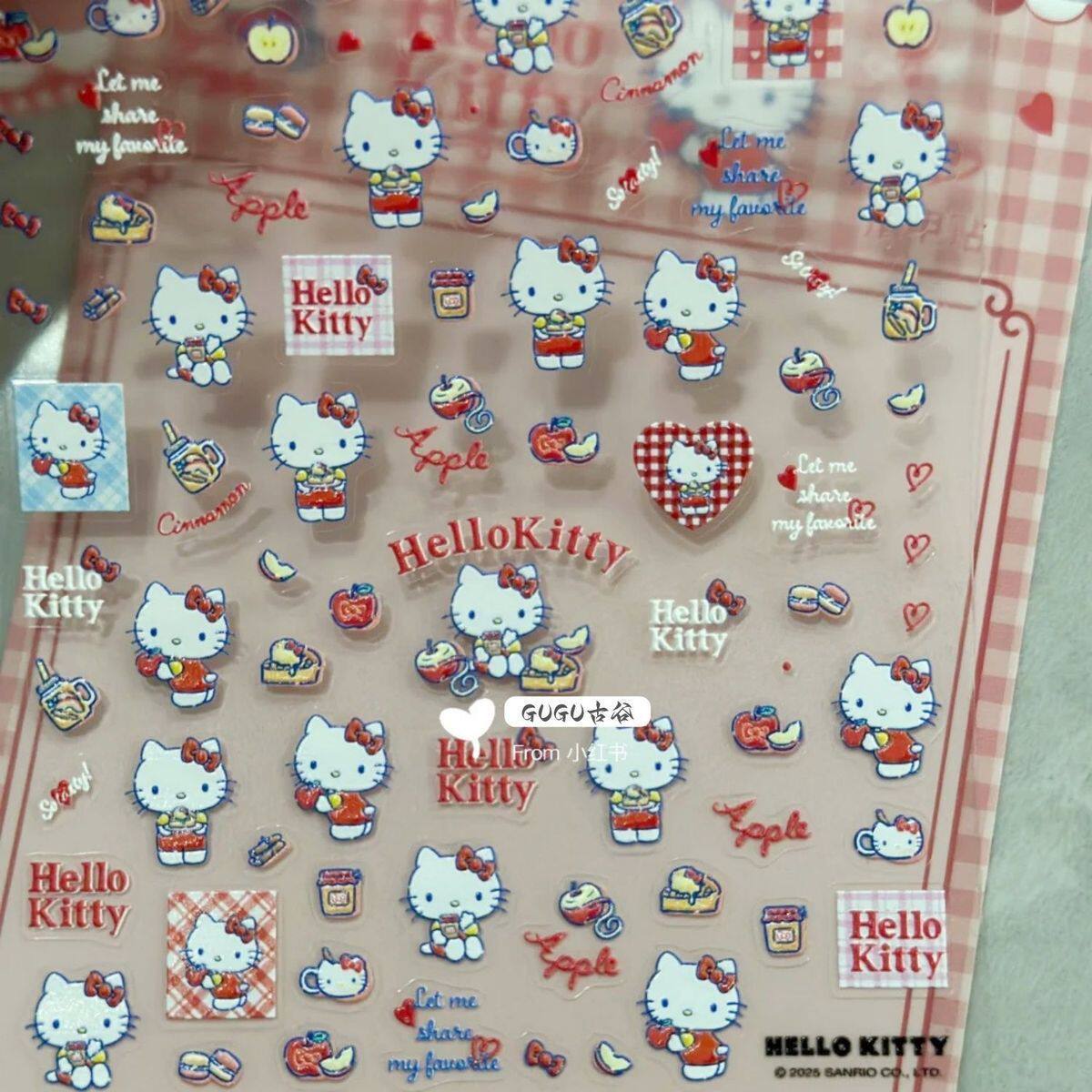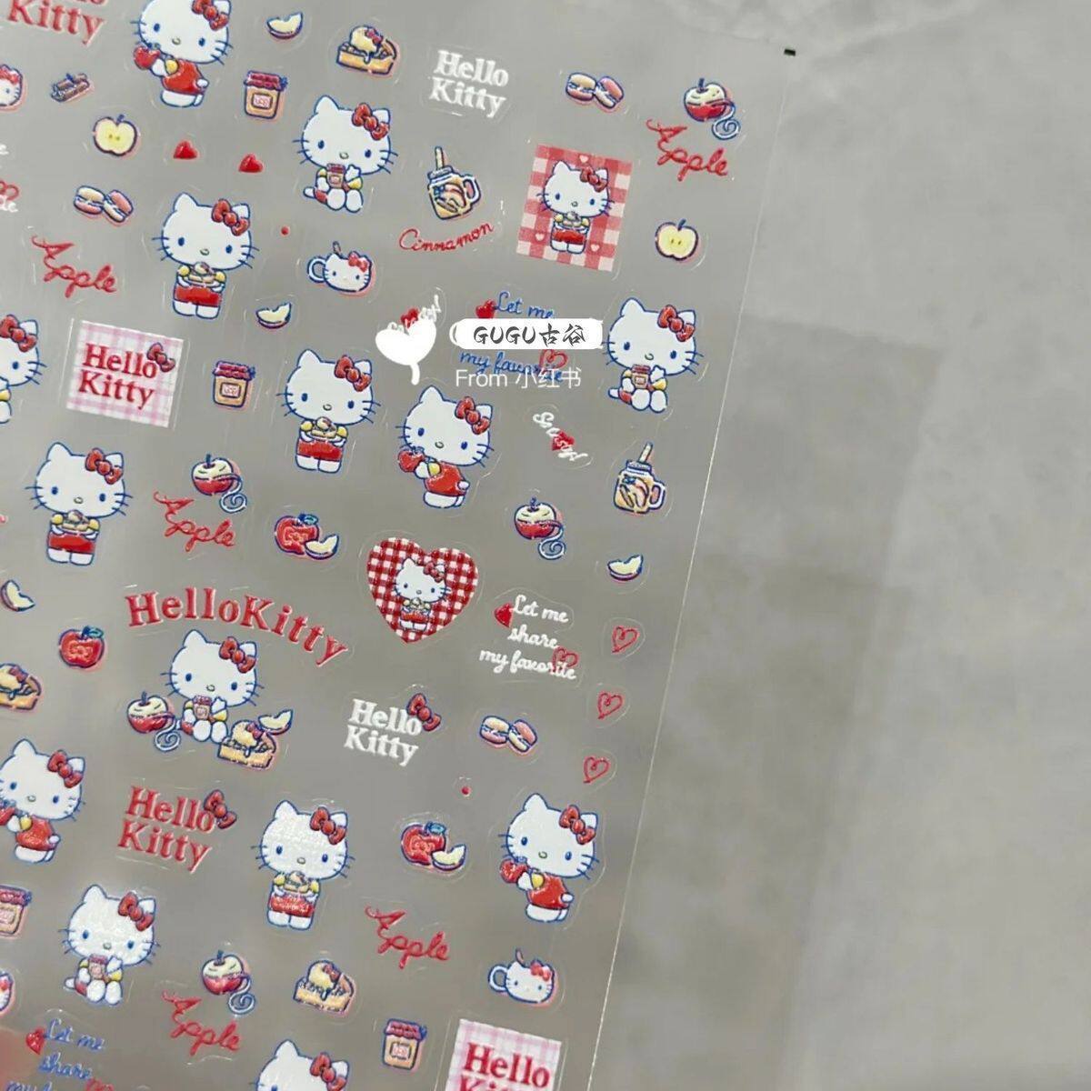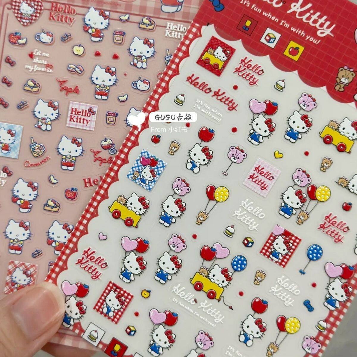Sanrio Embossed Stereo Nail Art Stickers Apple Katie Paper Cartoon Cute Adhesive Camera Water Cup DIY Nail Stickers