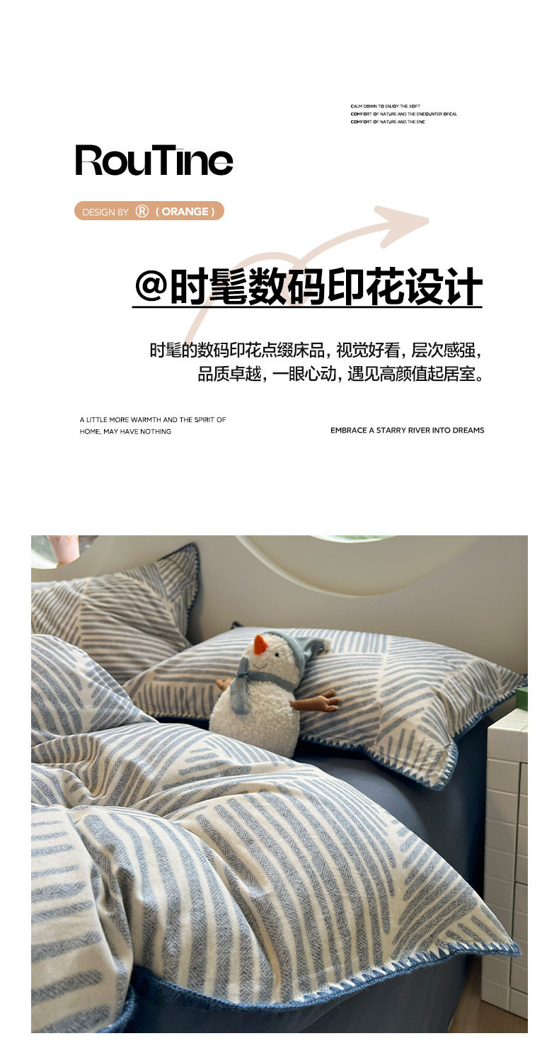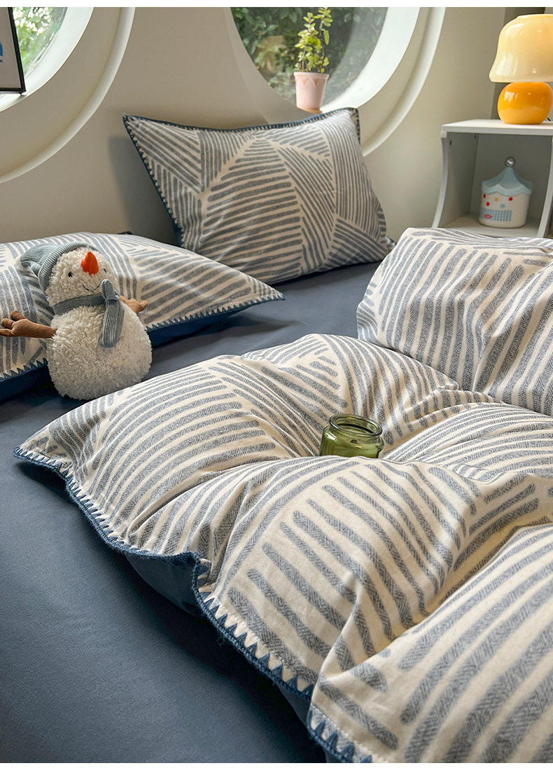 Casual Autumn and Winter Pure Cotton Brushed Bed Four-Piece Set Thickeneded Cotton Quilt Cover Accessible Luxury High-End Bed Bed Sheets Three-Piece Set