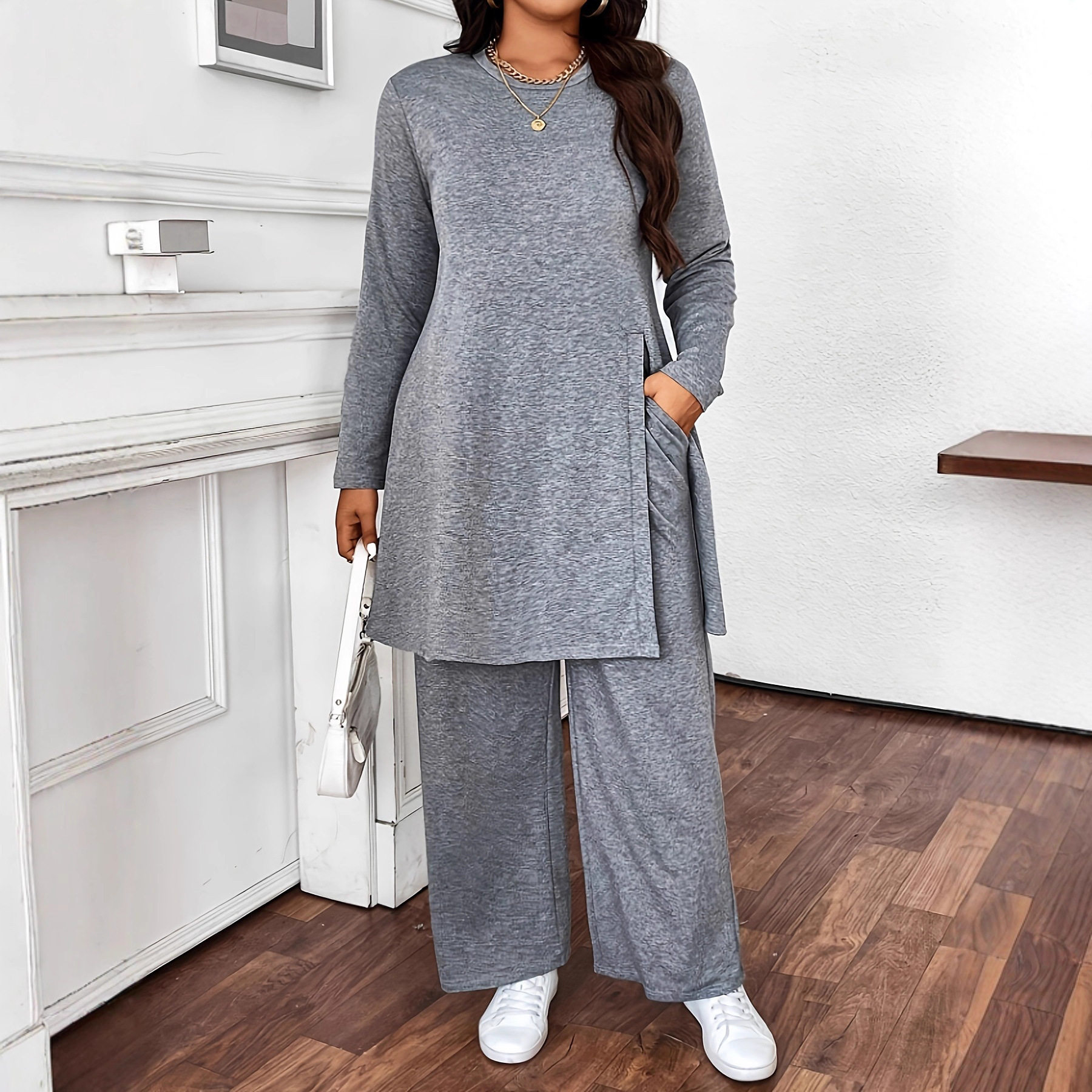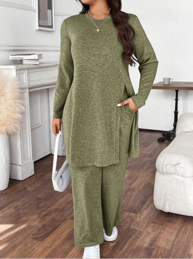 Casual Korean Fashion Suit for Women 2025 New Autum Casual Style Long-Sleeved Tops Slimming Look Pants Two-Piece Set