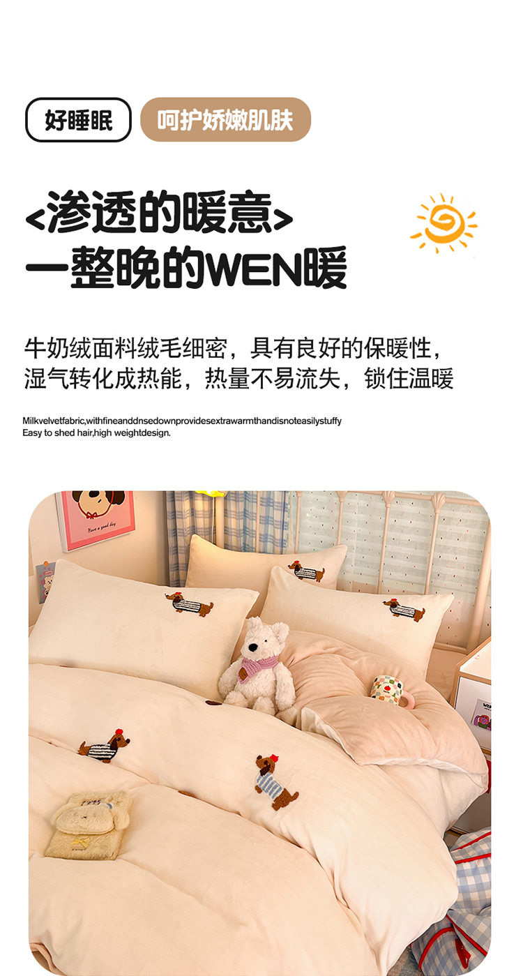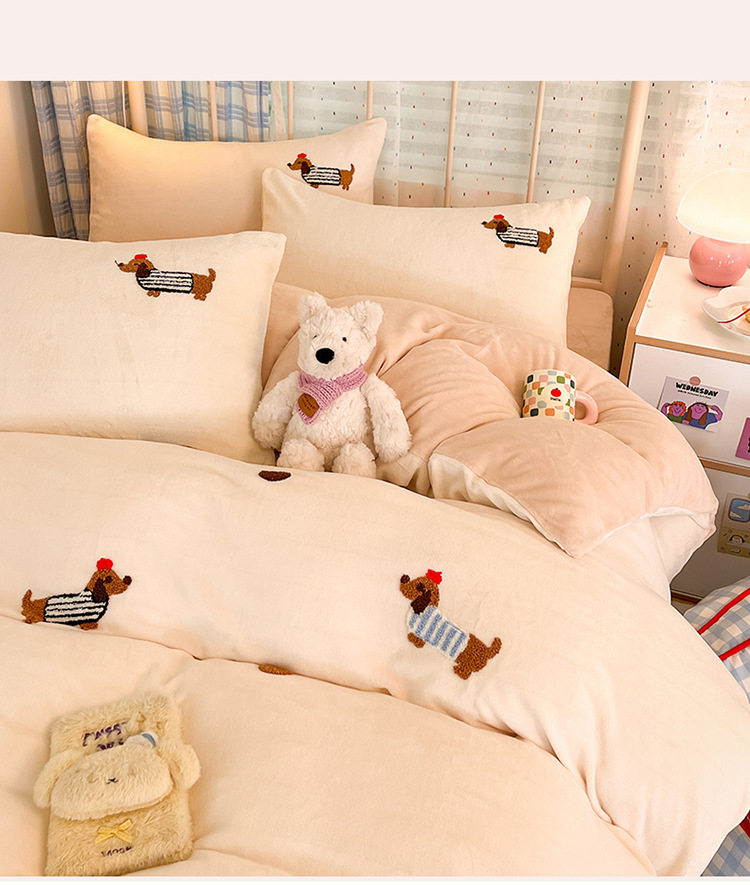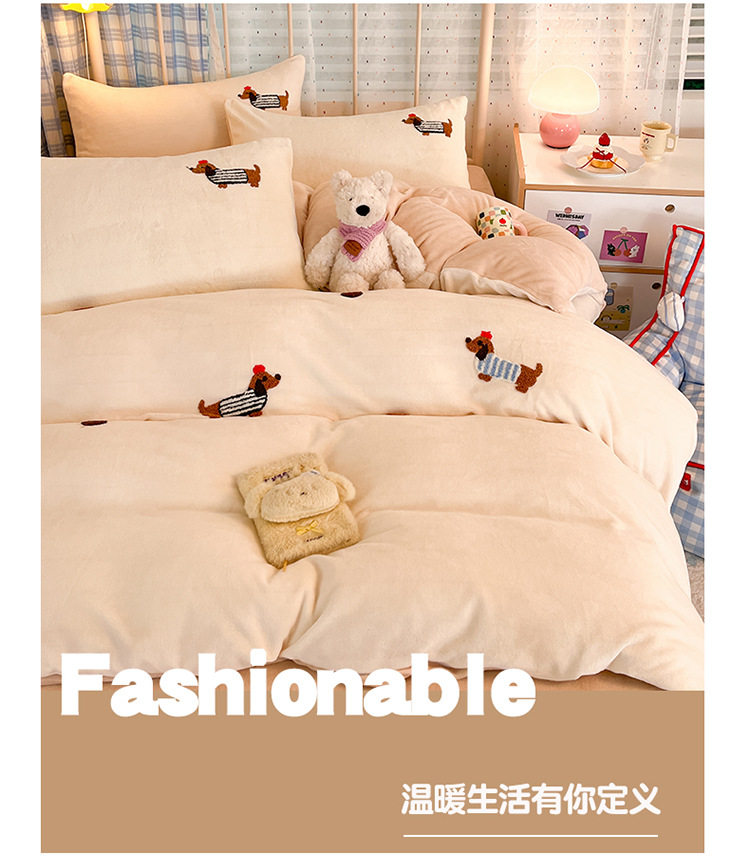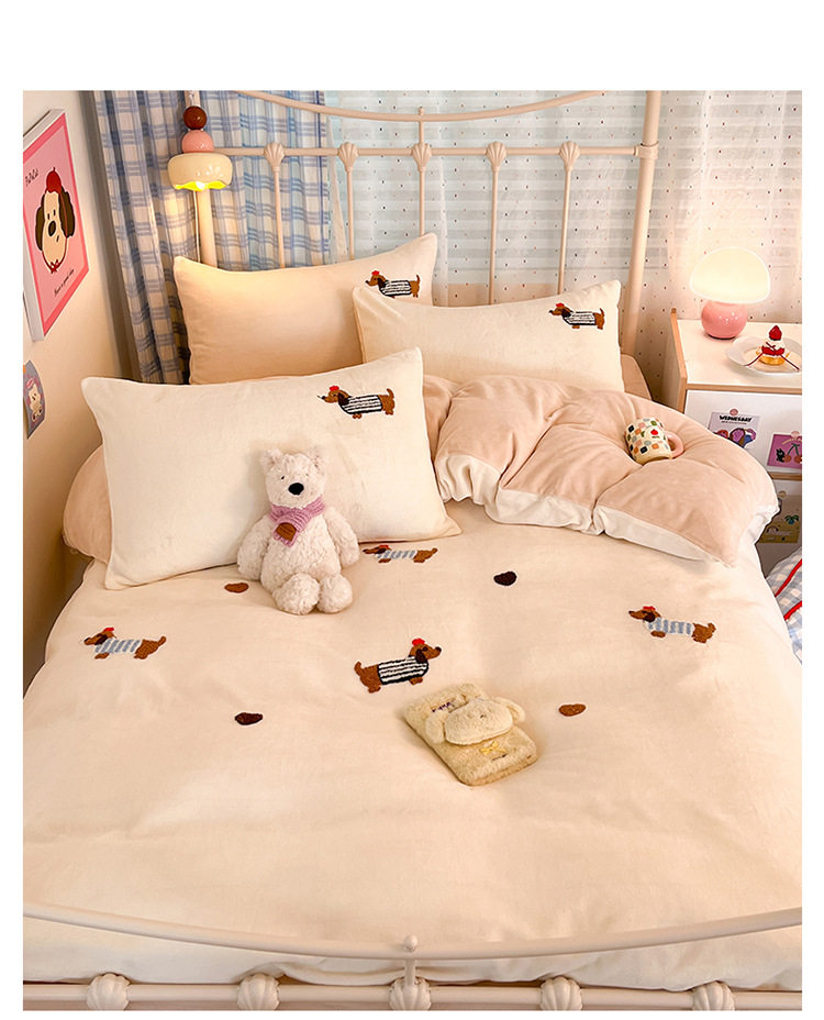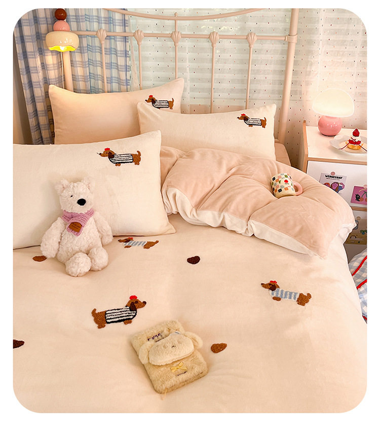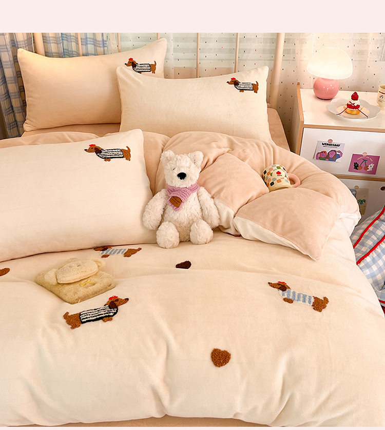 Category a Autumn and Winter Thickeneded Milk Velvet Four-Piece Set for Single and Double Student Dormitories Ins Cute Cartoon Baby Velvet Three-Piece Set
