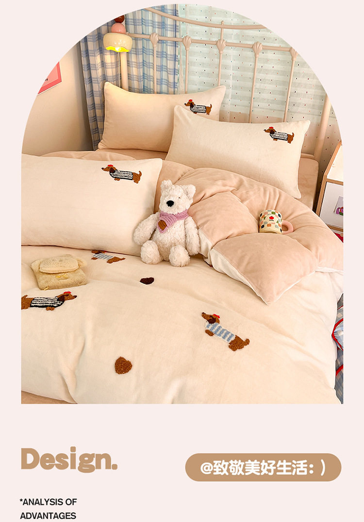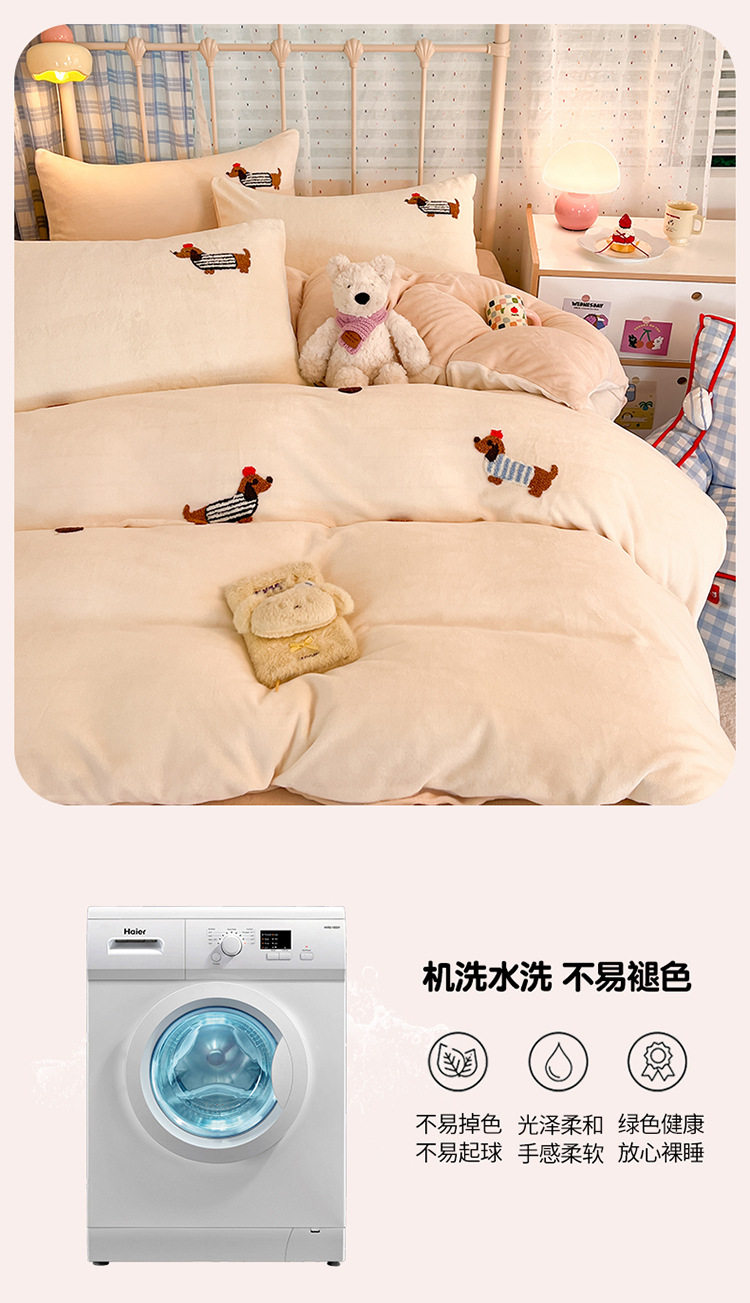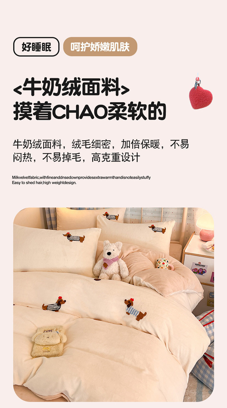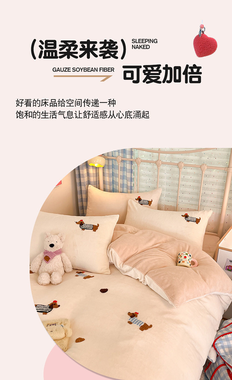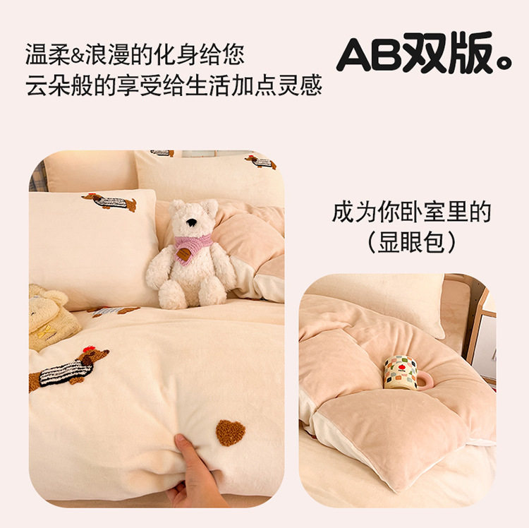 Category a Autumn and Winter Thickeneded Milk Velvet Four-Piece Set for Single and Double Student Dormitories Ins Cute Cartoon Baby Velvet Three-Piece Set