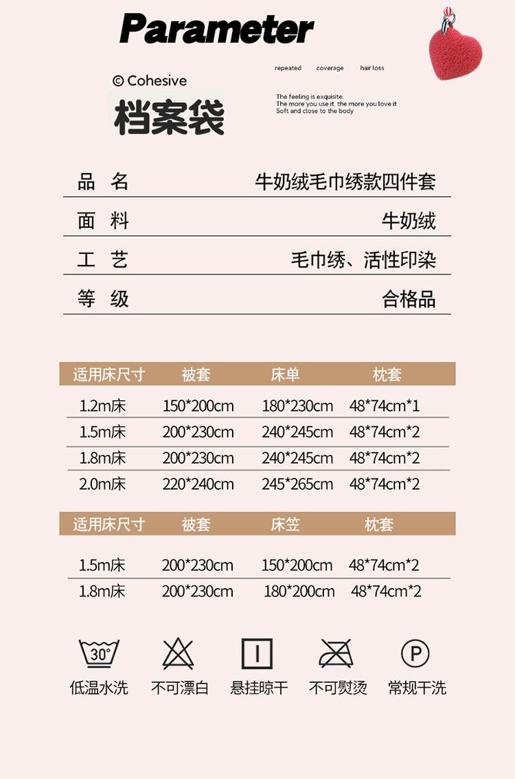 | Bedding subdivision | Four-piece set |