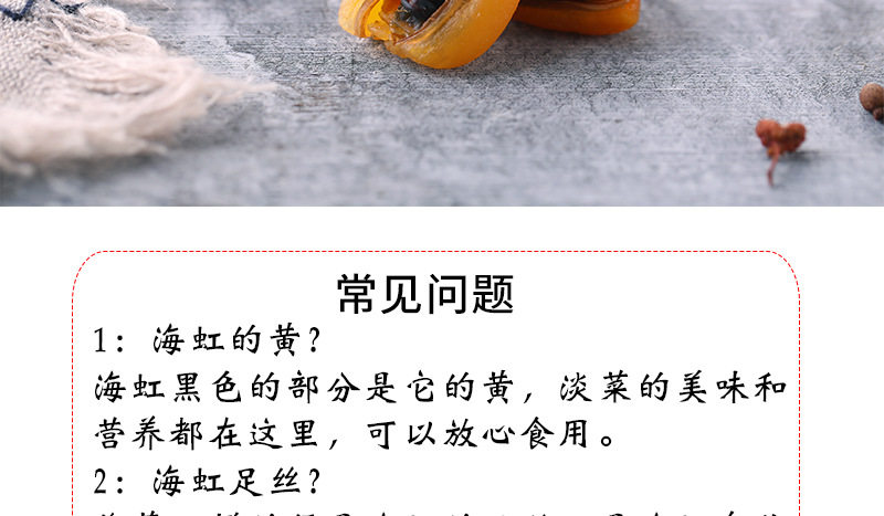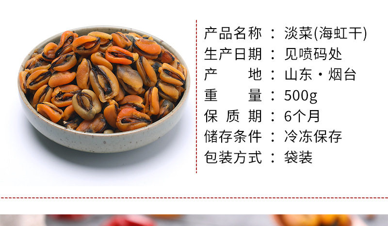 | Packaging specifications | Small size 500g (bag),500g of scallops (about 1.2~1.6cm long),500g medium and large scallops (about 1.5~2cm long),Extra large scallops 250g (canned about 3.5cm long) |