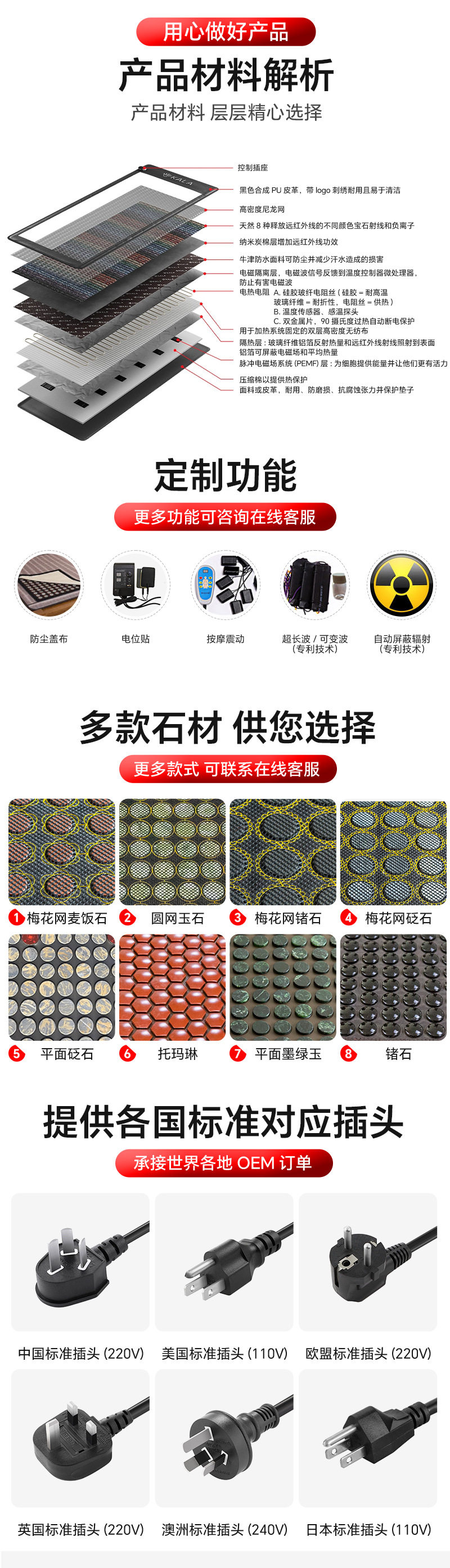 Tourmaline Heating Pad, Germanium Stone, Stone Photon Energy Bed, Jade Mattress, Moisture and Cold Removal, Ultra-Long Wave Magnetic Therapy Mattress