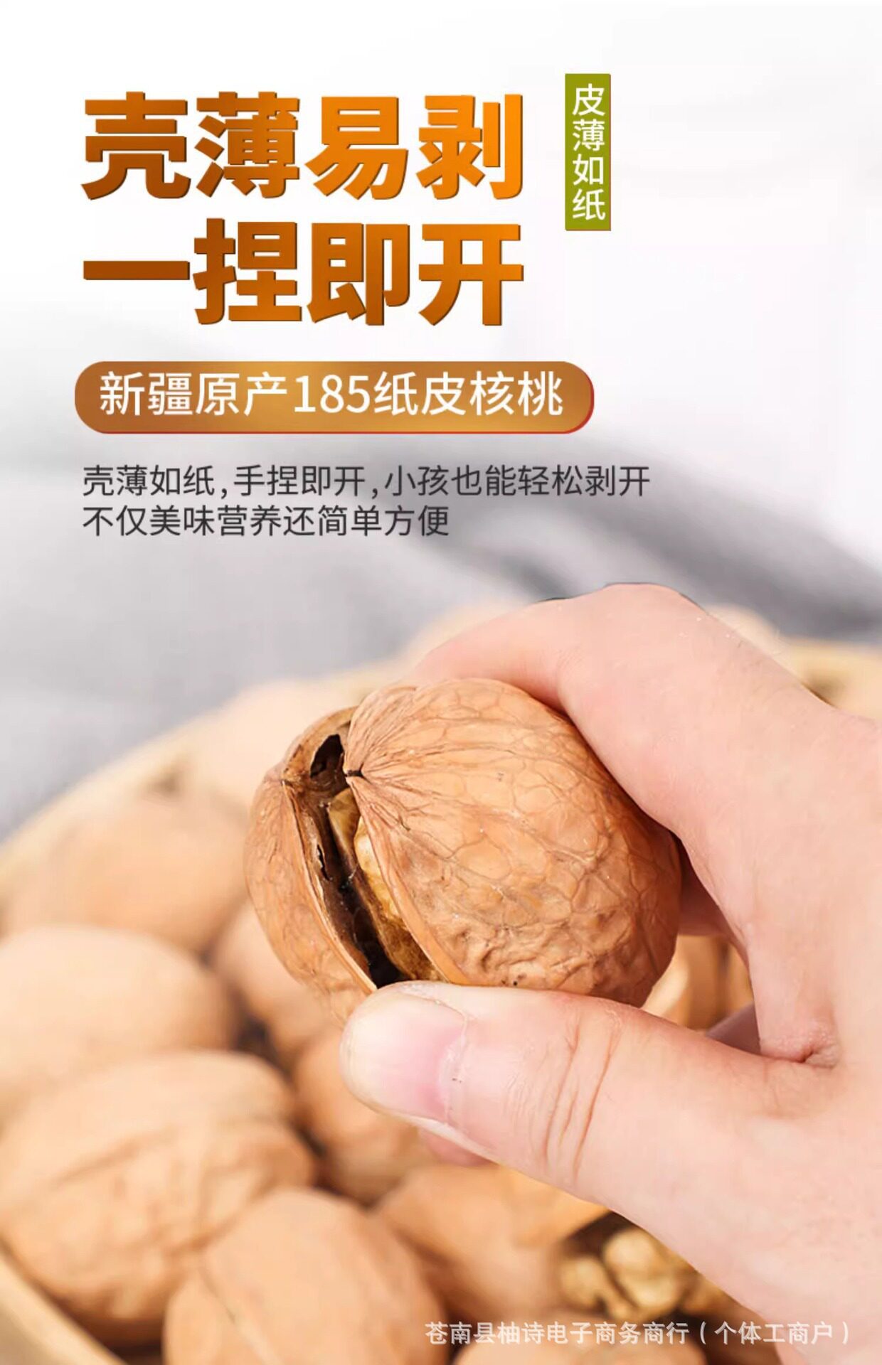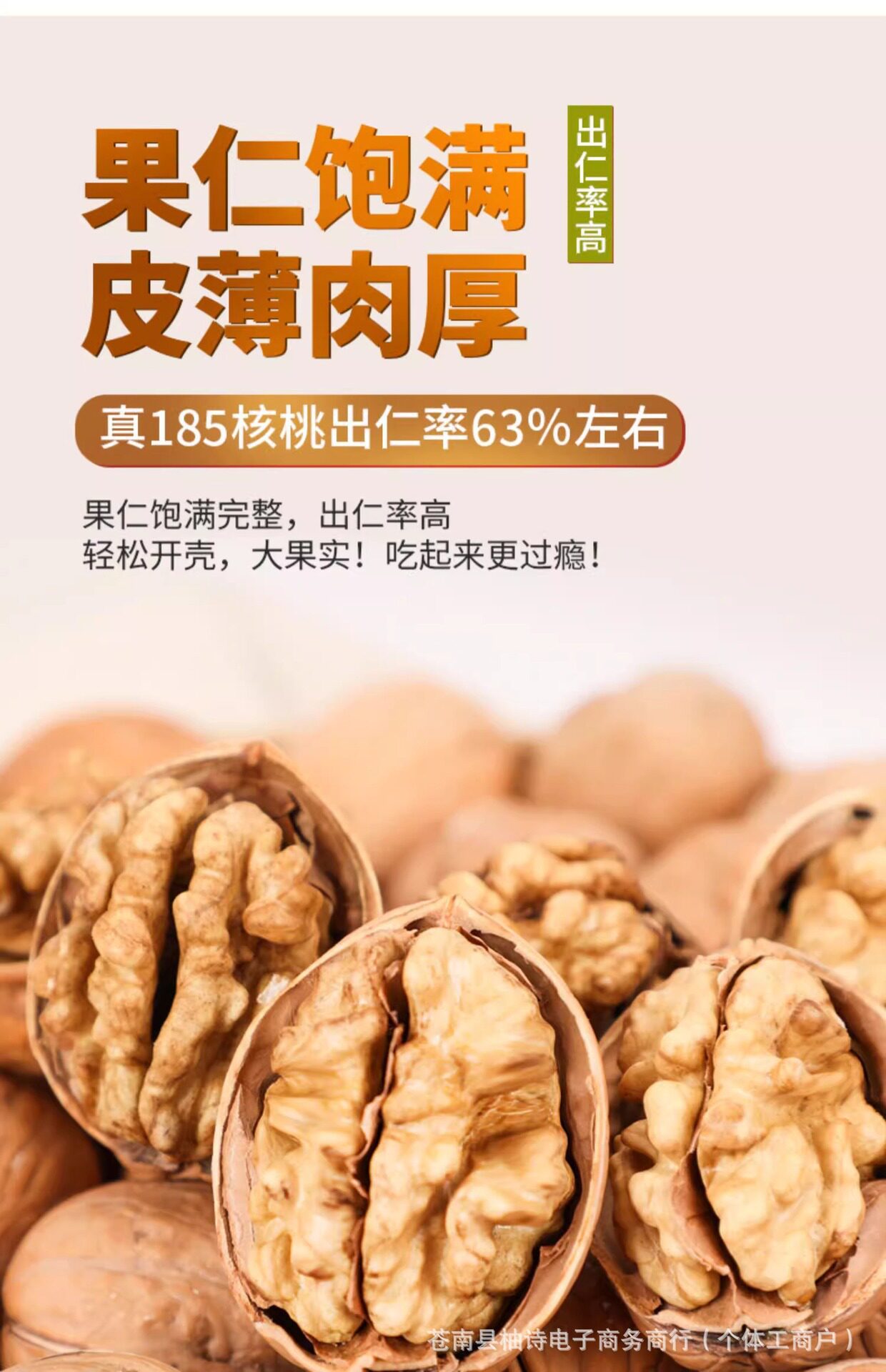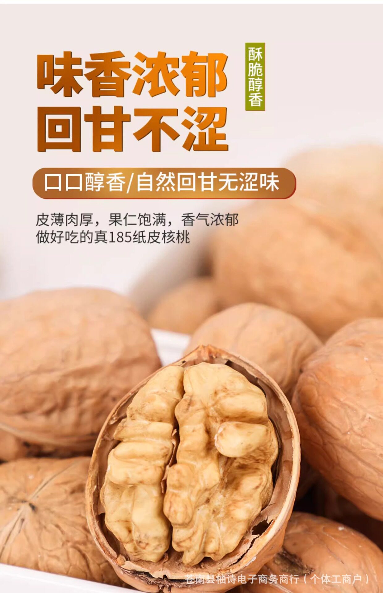 | Packaging specifications | Half a pound of small walnuts [taste],0.5kg thin-skinned walnuts [small fruit],1.0kg thin-skinned walnuts [small fruit],1.0kg thin-skinned walnuts [medium fruit],1.0kg thin-skinned walnuts [large fruit],1.5kg thin-skinned walnuts,2.5kg thin-skinned walnuts,185 paper walnuts 1.0kg,185 paper walnuts 2.5kg |