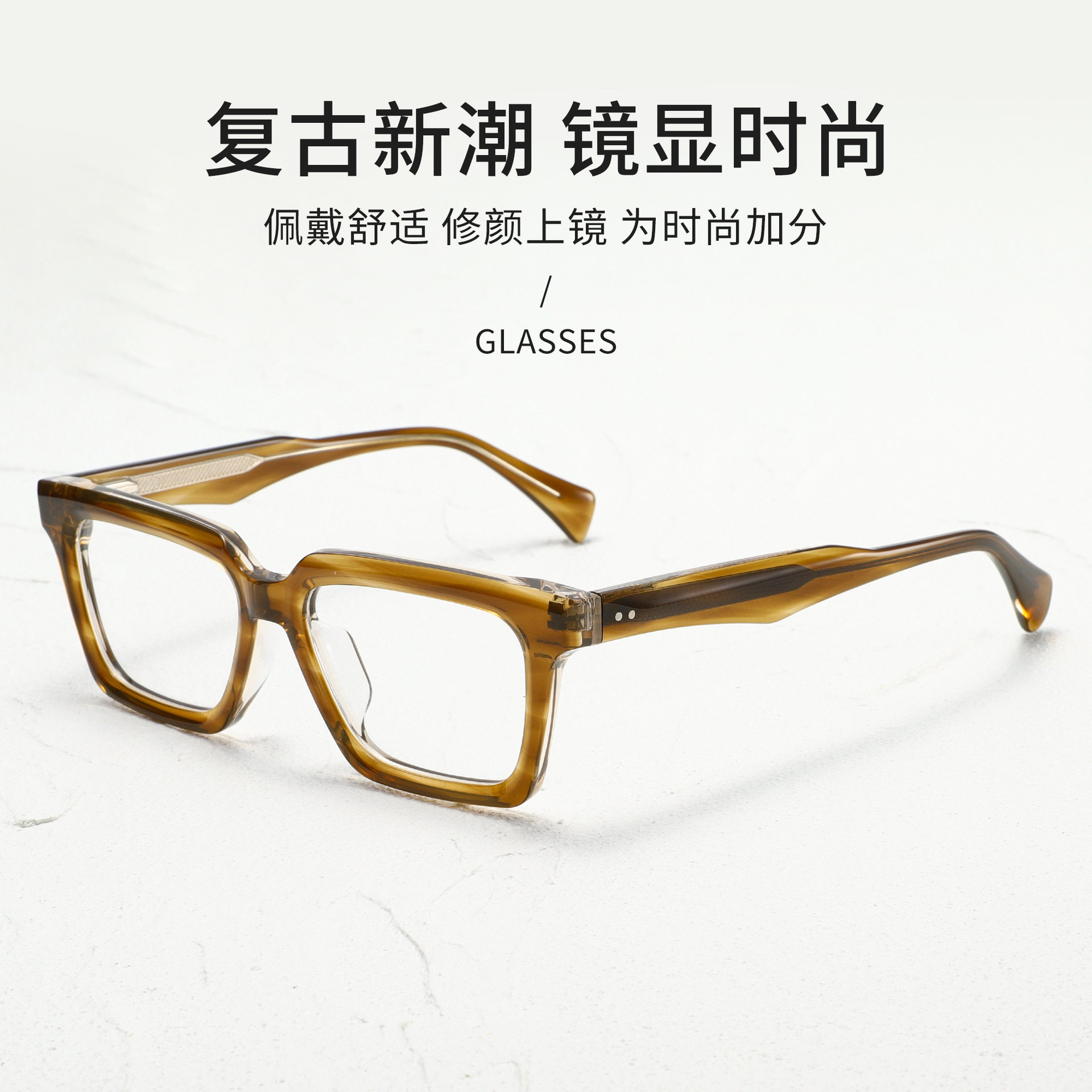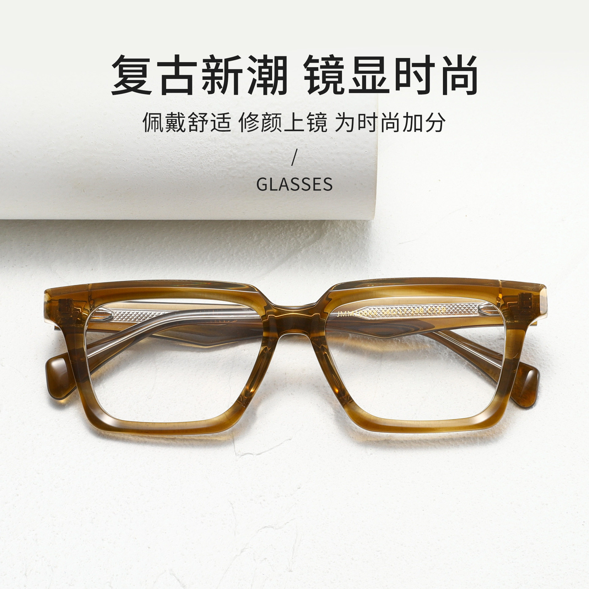 Jacques Tree Pattern Two-Color Thick Material New Product Same Style Large Square Thick Material Plate Glasses Frame European and American Trend
