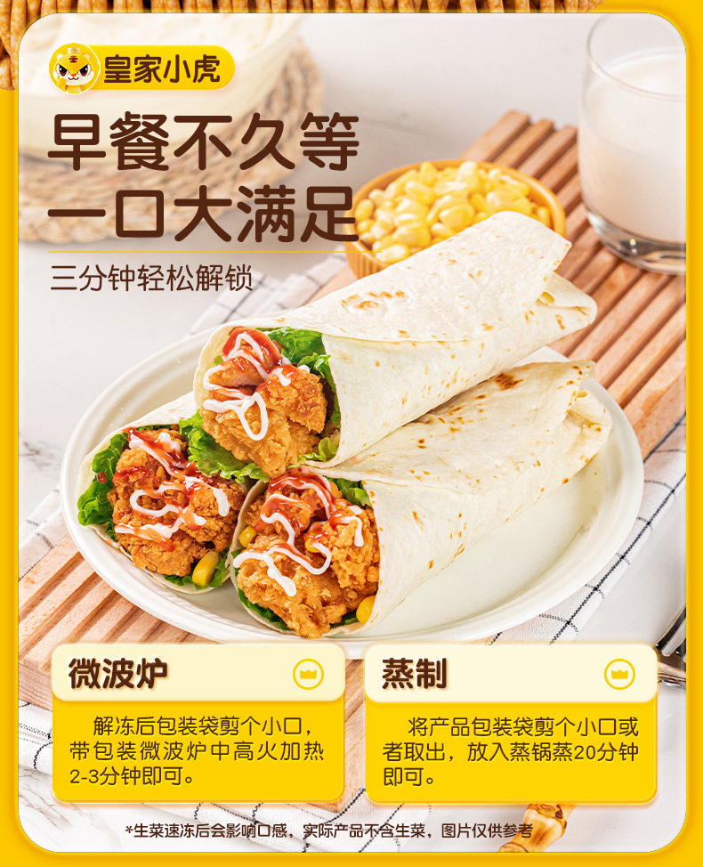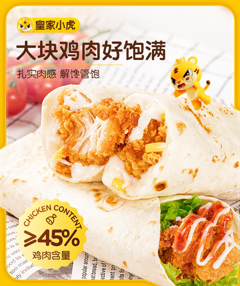 Little Tiger Mexican Chicken Roll Breakfast Semi-Finished Food Old Beijing Heated Ready-To-Eat Microwave Instant Food
