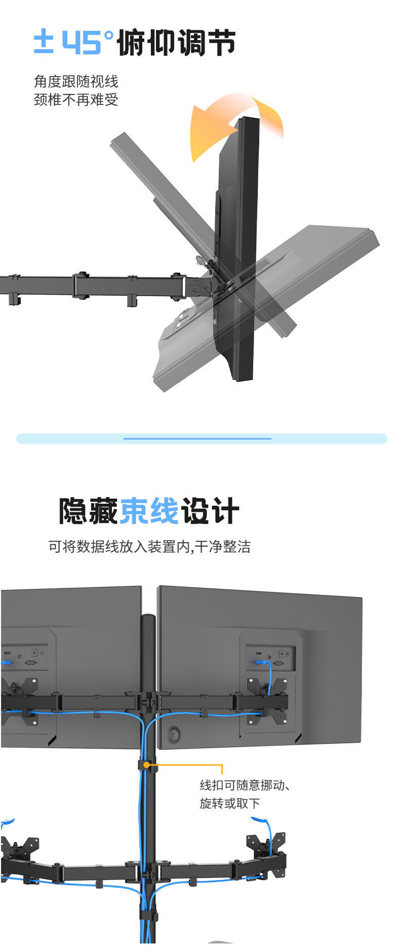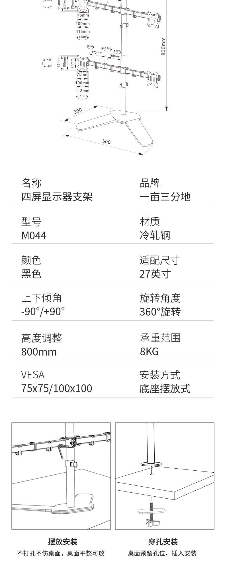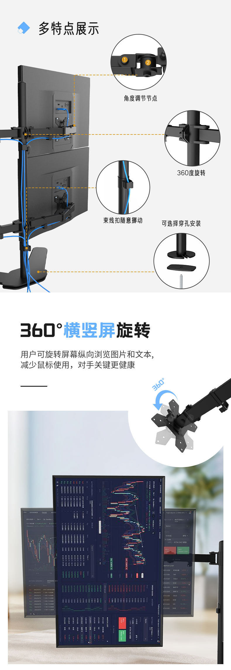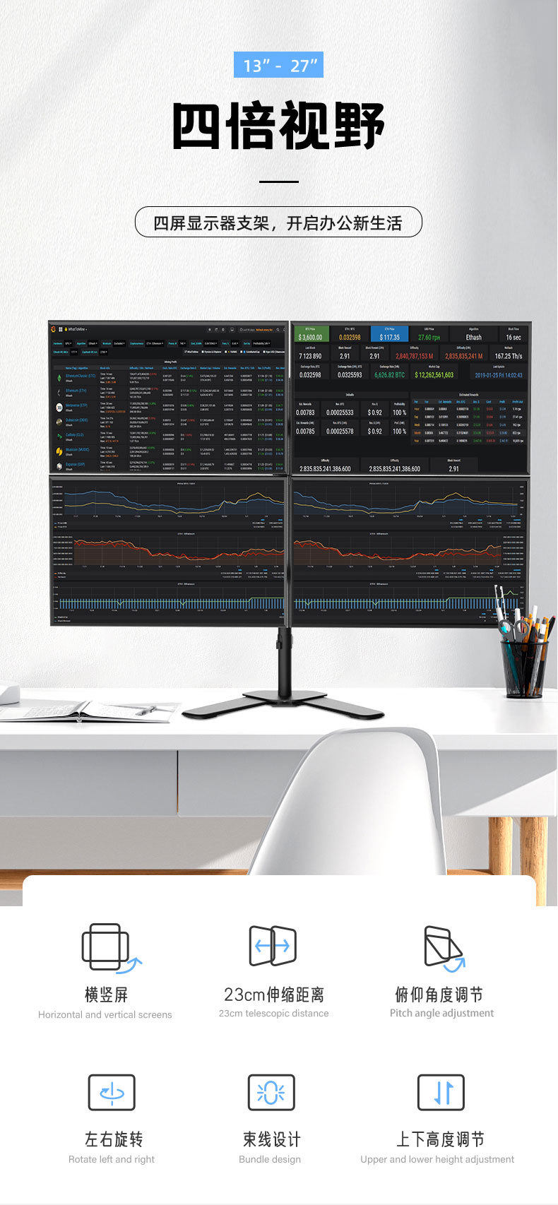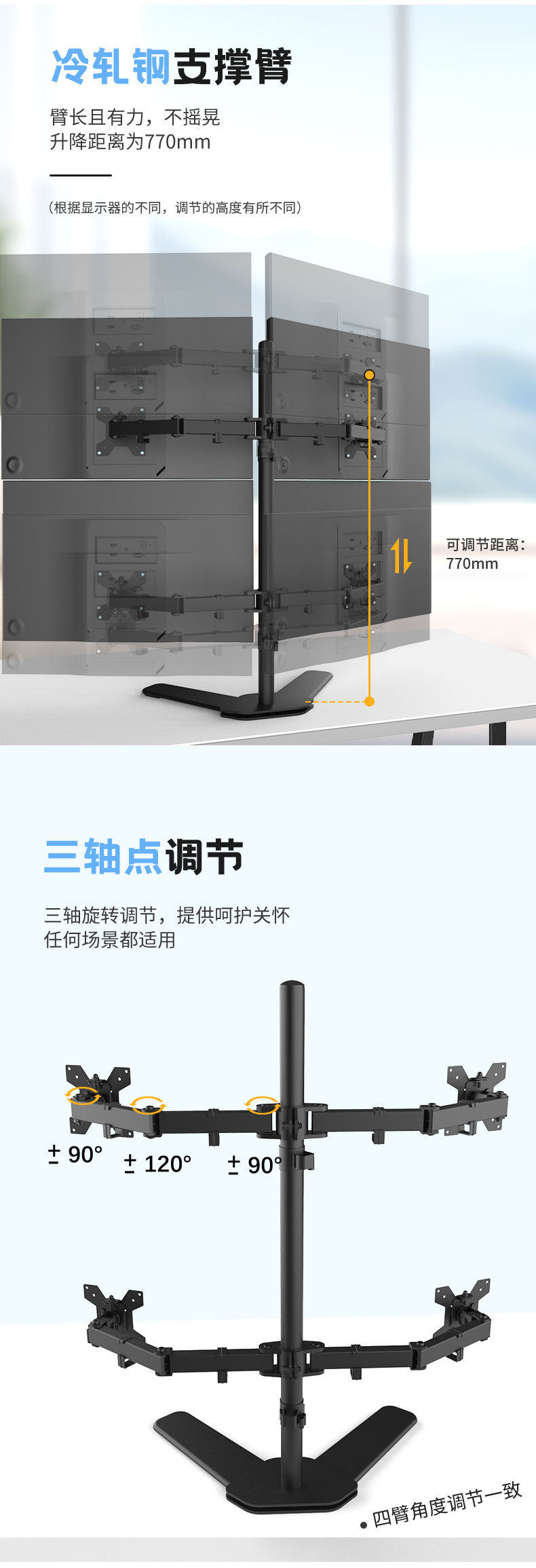 Ke Hao In-Stock Four-Screen Base Computer Screen Ergonomic Rotatable Lifting Mechanical Arm Monitor Stand