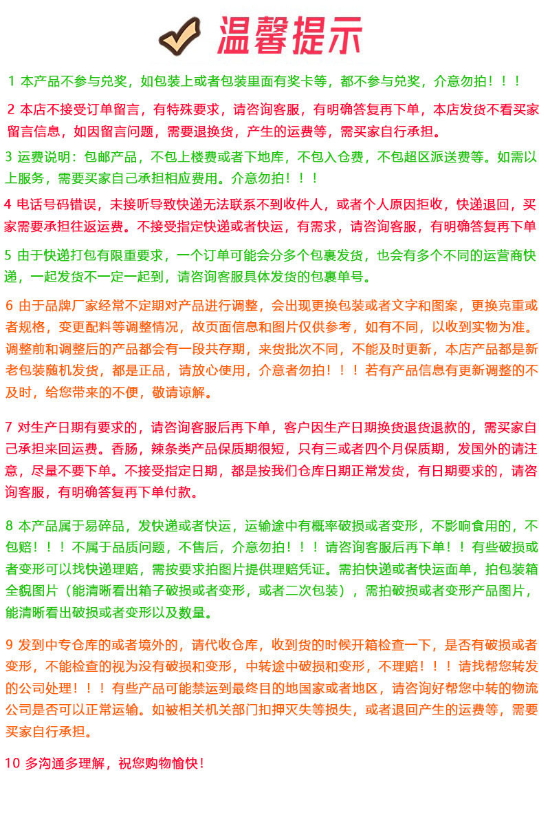 | Packaging specifications | Li ziqi [brown sugar ginger tea] 84g (single box) [no compensation for damage or deformation of the box],Jiayi [brown sugar] 300g (single bag),Jiayi [ginger brown sugar] 300g (single bag),Golden flavor [original flavor] nutritious oatmeal 600g (single bag),Yonghe soy milk [original ground original flavor] soy milk powder 300g (single bag),Yonghe soy milk [sucrose] soy milk powder 300g (single bag),Yonghe soy milk [sweet flavor] soy milk powder 300g (single bag),Yonghe soy milk [red date flavor] soy milk powder 300g (single bag),Li ziqi【350g】osmanthus nut lotus root powder (single can),Li ziqi【258g】osmanthus nut lotus root powder (single can),Li ziqi black sesame walnut powder 360g (single box),Yonghe soy milk [sweet soy milk powder] 210g (single bag),Yonghe soy milk original mill [red date flavor] soy milk powder 300g (single bag) |