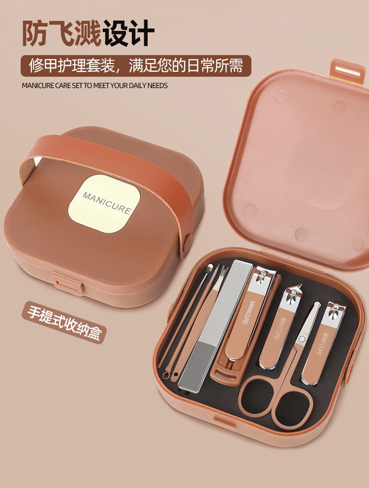 Cross-Border Suitcase 8-Piece Nail Clipper Set Anti-Splash Nail Clipper Portable Manicure Tool Nail Clipper Set