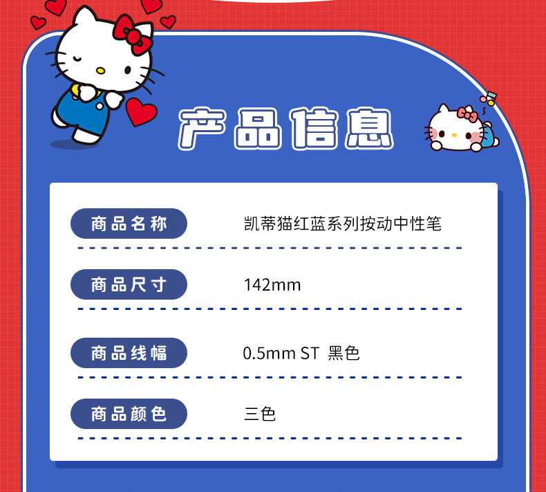 | Pen refill color | Hello kitty red and blue series gel pens 3 pieces in box |