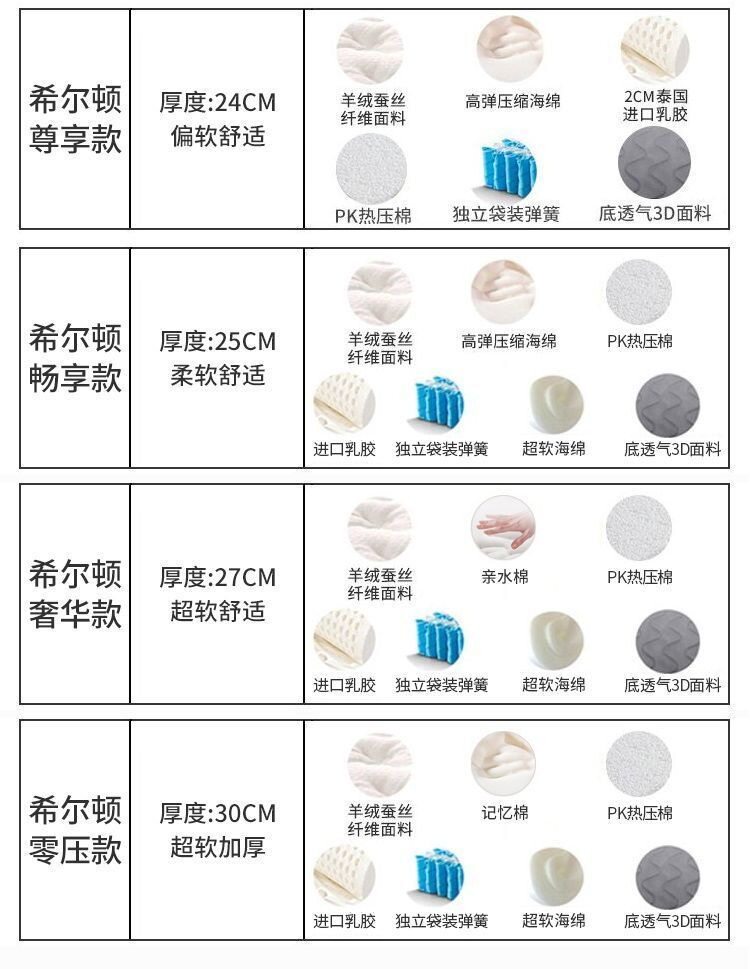 | Color | [harder] hilton mattress 20cm,[moderate] hilton comfort soft smart style 22cm,[soft] hilton master bedroom comfortable home style 24cm,ãyunrouãhilton yunrou deep sleep style 25cm,[mengying] hilton cloud mengying soft style 27cm,[cloud-like zero pressure] hilton top mattress 25cm |