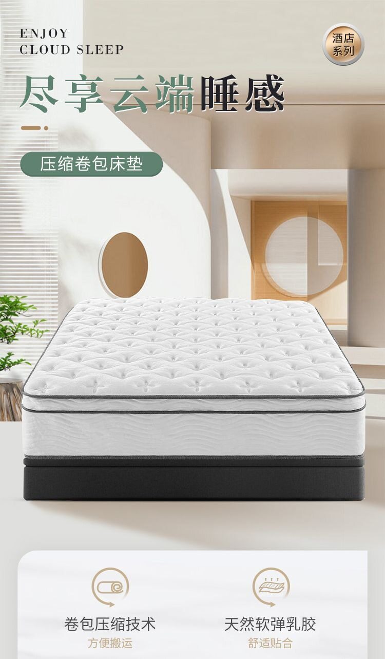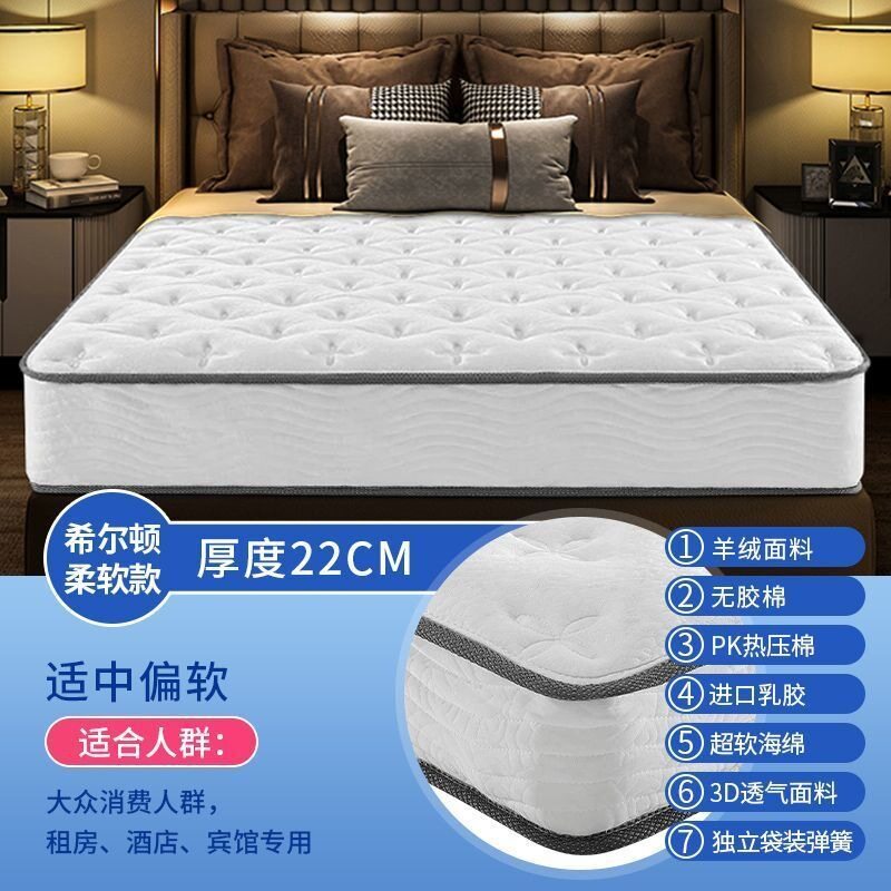 Foreign Trade Customized Hilton Mattress Five-Star Hotel Compressed Roll-Packed Mattress Export Independent Pocket Spring Mattress