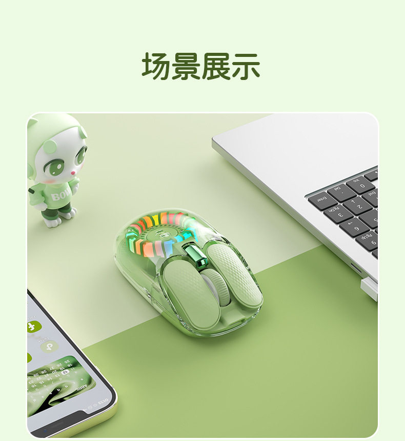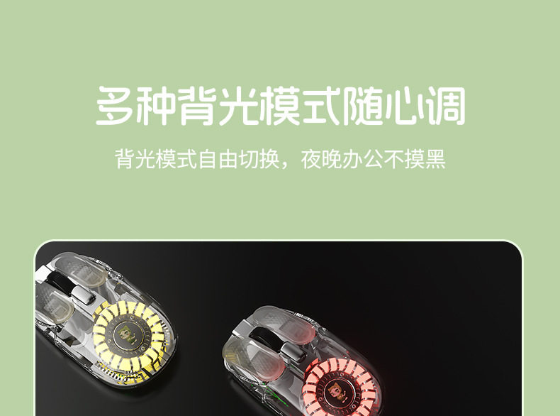 Md508Lbow Hangshi Transparent Backlit Wireless Bluetooth Dual-Mode Mouse Charging Silent 2025 New Model Cross-Border