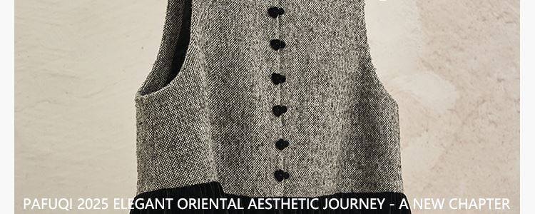 Black and Gray Color-Blocking New Chinese-Style Sleeveless Vest for Women, 2025 Autumn and Winter New Style, Patchwork Elegant Vest for Outerwear 7831